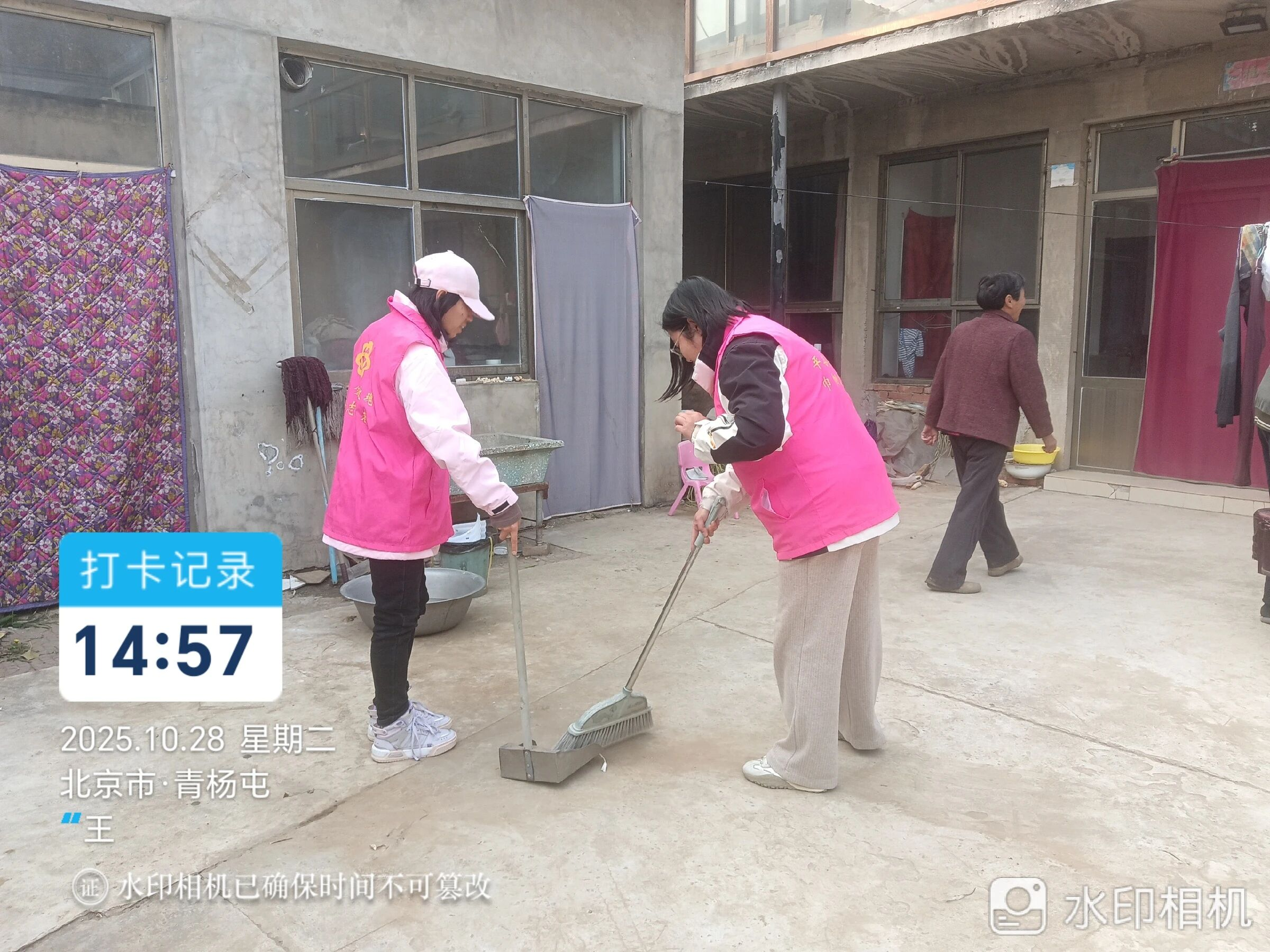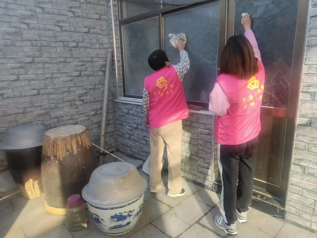 青杨屯村:金玫瑰巾帼志愿者为结对服务的独居老人清扫院落、擦拭门窗,送上定制化节日祝福,让老人切实感受到“有人管、有人念”的温暖。