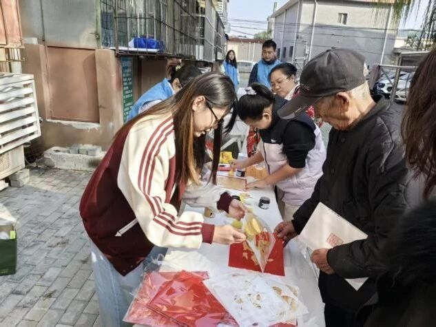 除了便民服务与互动游戏,市集还融入文化元素,让精神滋养与服务温暖同行。非遗拓印体验区前,居民们蘸取墨汁、抚平纸张、按压拓板,每一件作品都承载着大家对非遗文化的好奇与喜爱;暖心摄影展让居民们直观感受到暖心社工群体为民服务的的辛劳与温度。《平谷文学》的发放与捐赠,让居民们不仅在家门口与平谷区作家近距离对话,更让“互助、友爱、传承”的种子在胜利社区播撒、深扎。