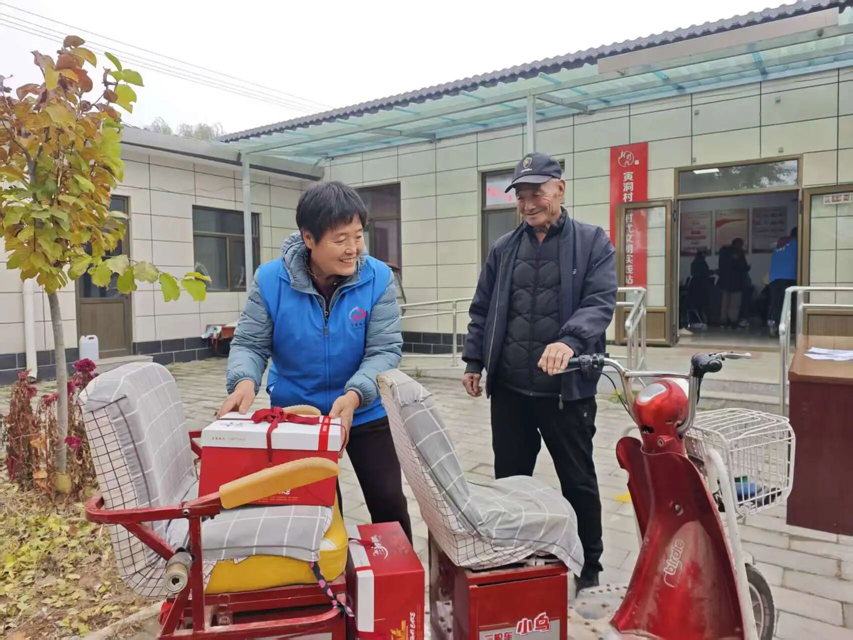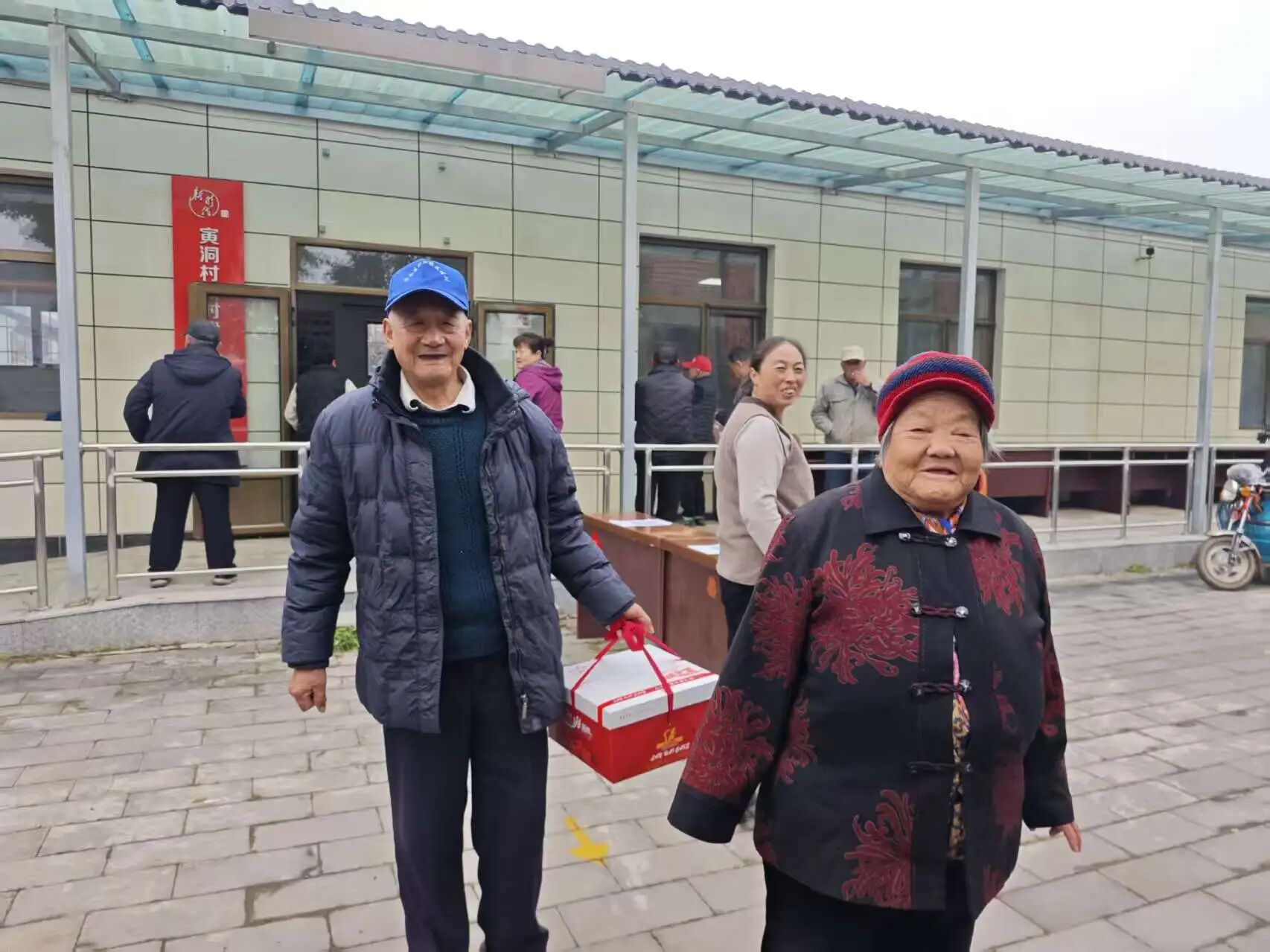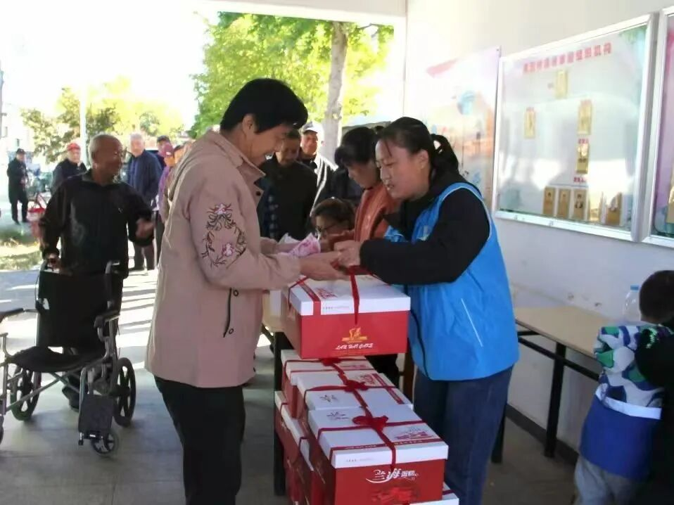 每年重阳节,寅洞村为老人发放糕点礼盒