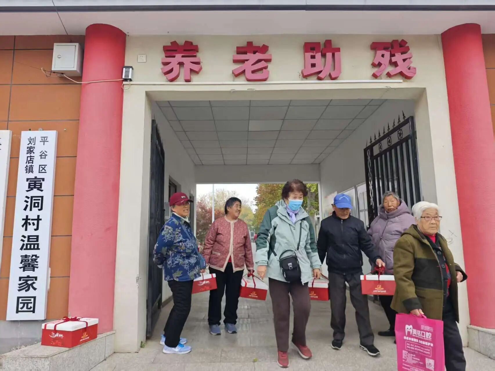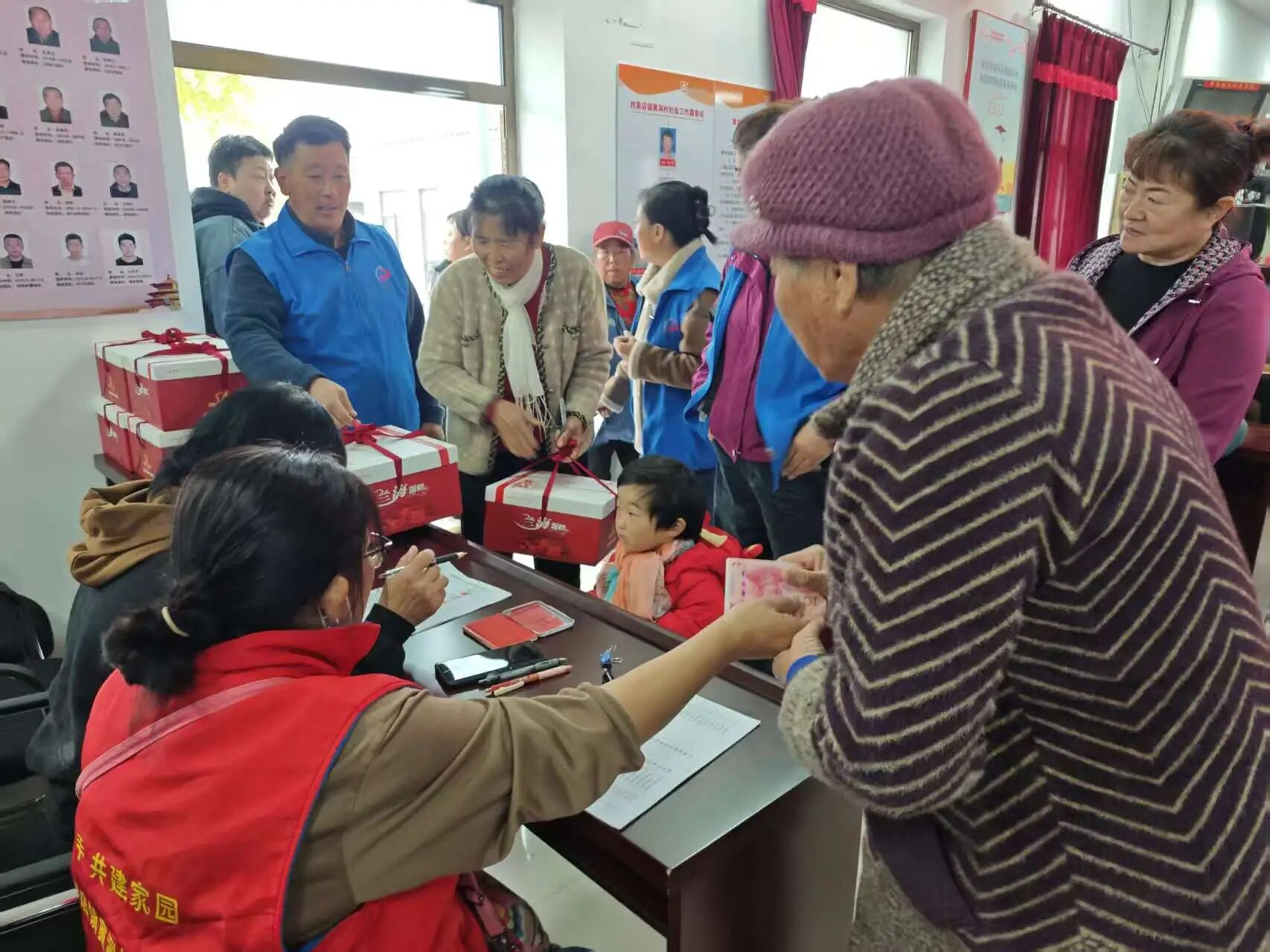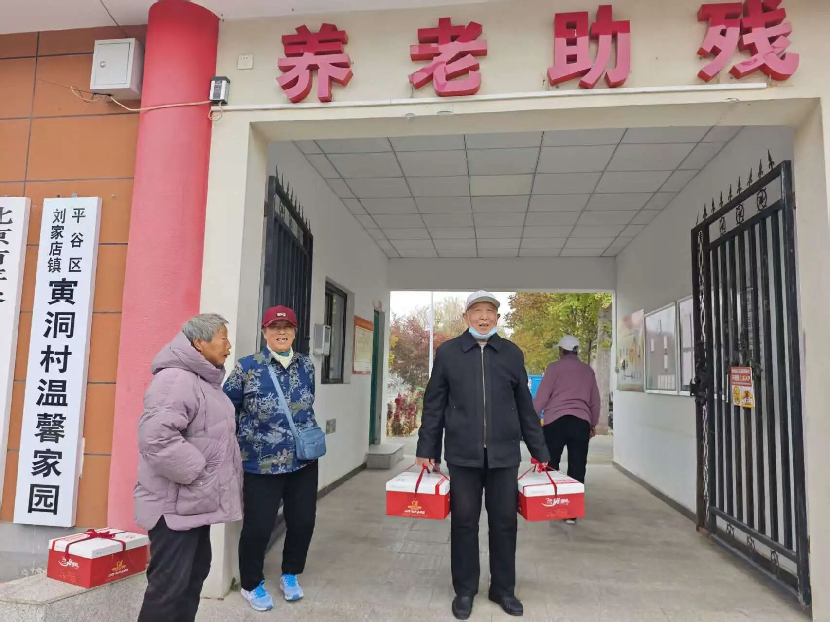 每年重阳节,寅洞村为老人发放糕点礼盒