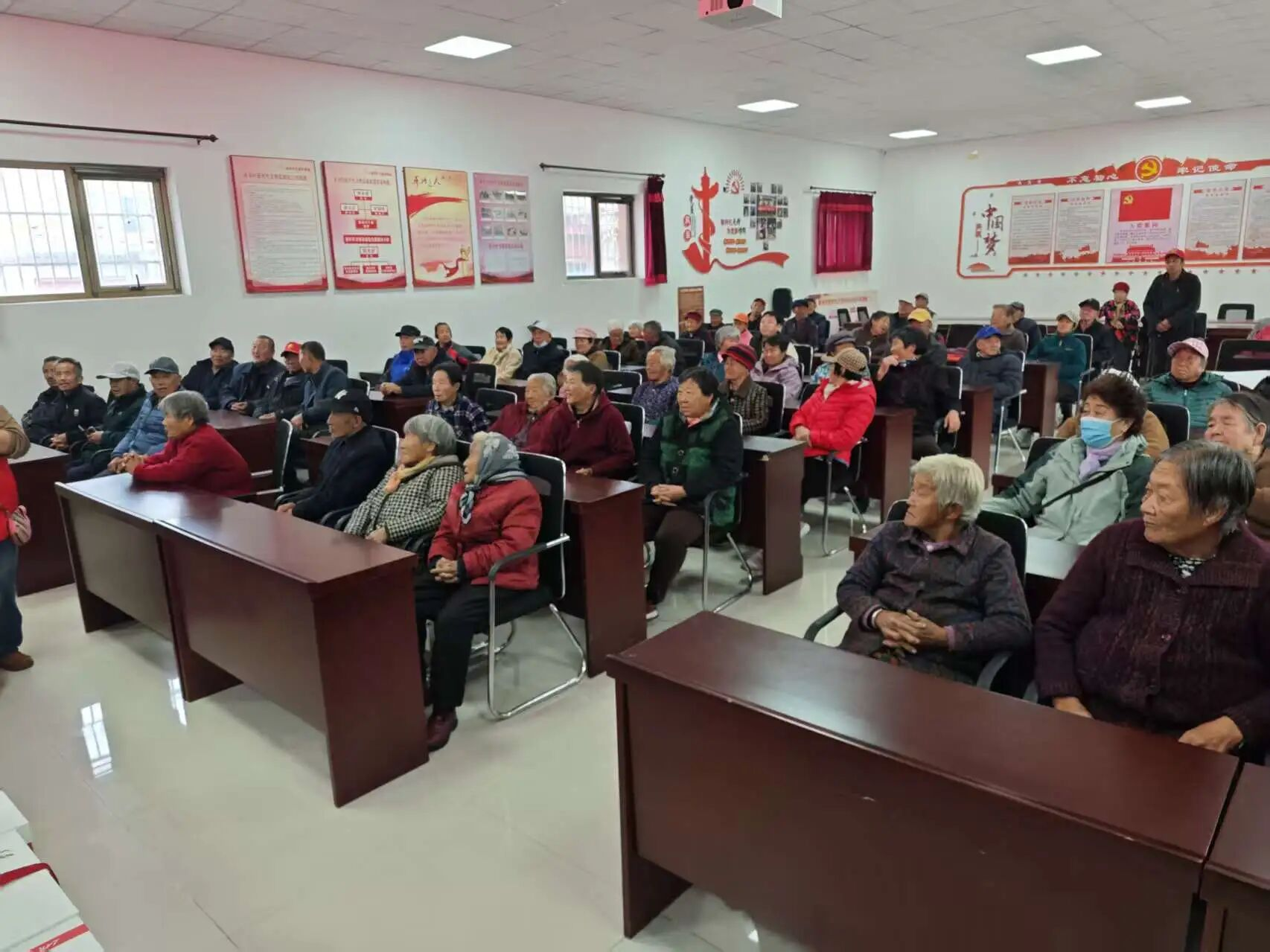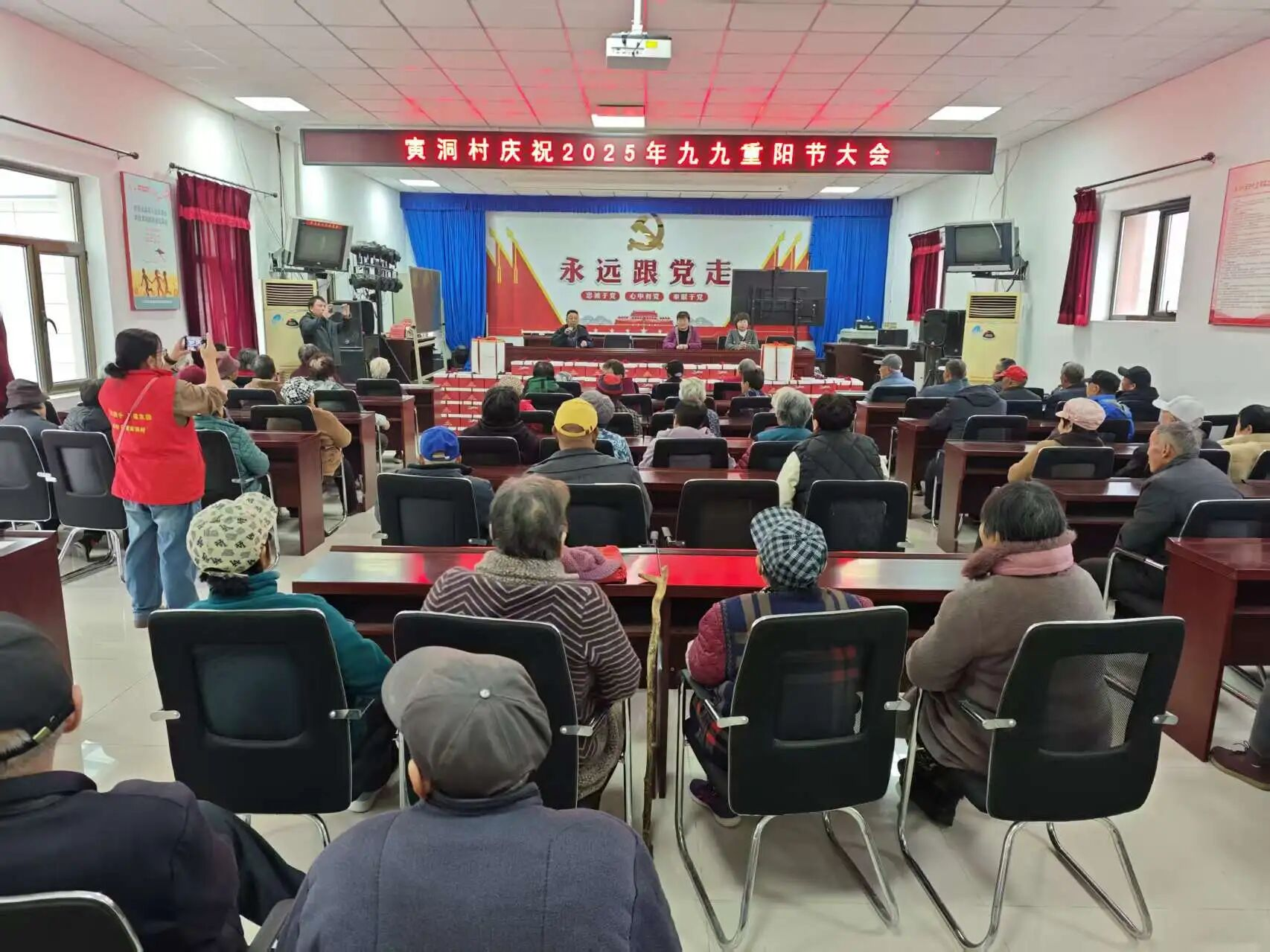 今天正值重阳佳节,寅洞村新时代文明实践站里格外温馨。全村163位年满70周岁的老人早早来到现场,或坐在一起拉家常,或期待地望向舞台方向,脸上满是幸福的笑意。