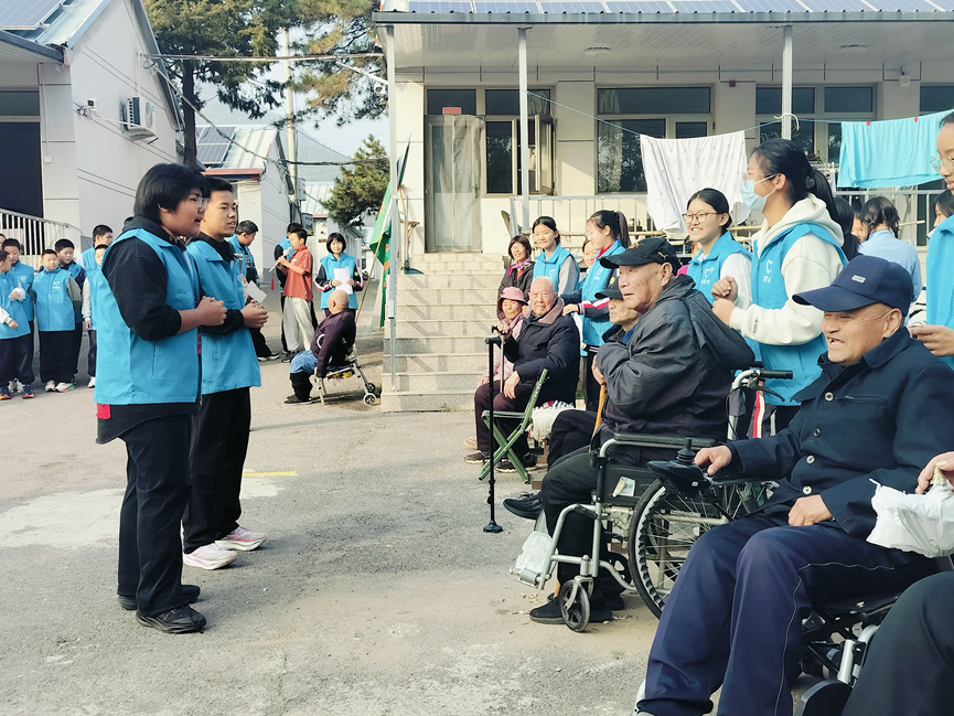 没有华丽舞台,没有专业灯光,小院里的文艺表演却格外热闹。合唱清亮、舞蹈轻快、诗朗诵动情,孩子们的表演让敬老院里笑声不断。一位爱唱的爷爷更是起身加入,与学子们同唱《夕阳红》,歌声里满是岁月的温柔。
