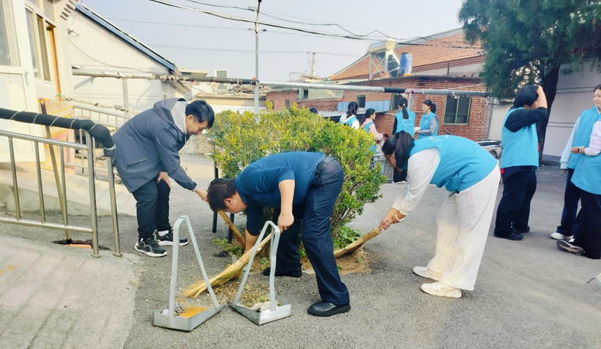 同学们用扫把轻扫院落落叶,用抹布细擦走廊扶手,连窗台绿植的叶片都被擦拭得透亮。同学们的动作没有丝毫敷衍,专注的神情里满是真诚。“孩子们真仔细,连花盆边的灰都清干净了!”一位奶奶看着亮洁的窗台,眼睛笑成了一条线。