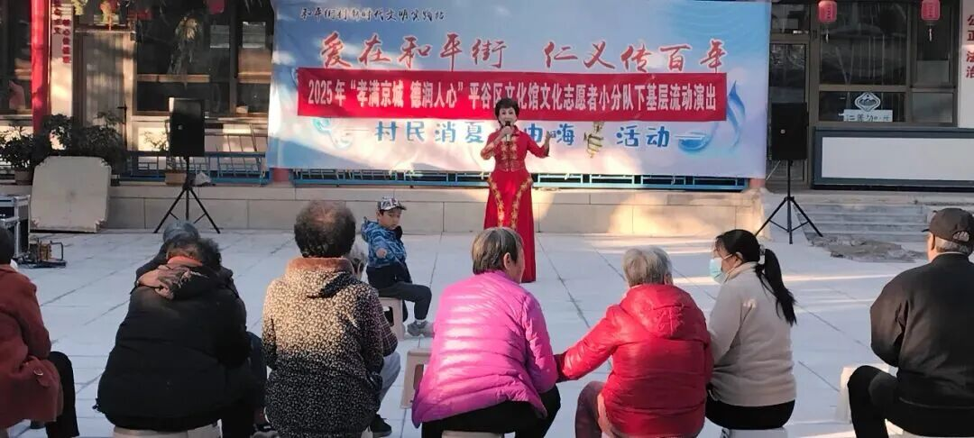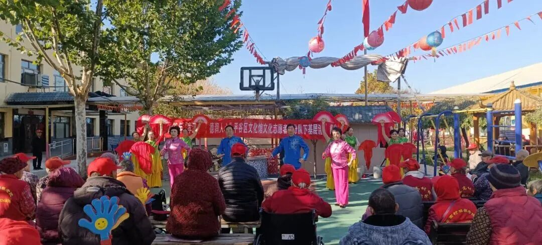 平谷区文化馆志愿者小分队将流动演出深入到平谷镇和平街村、兴谷街道上纸寨村、南独乐河镇、黄松峪乡、东高村镇、山东庄镇敬老院等地,为老年朋友送去节日的问候和祝福。
