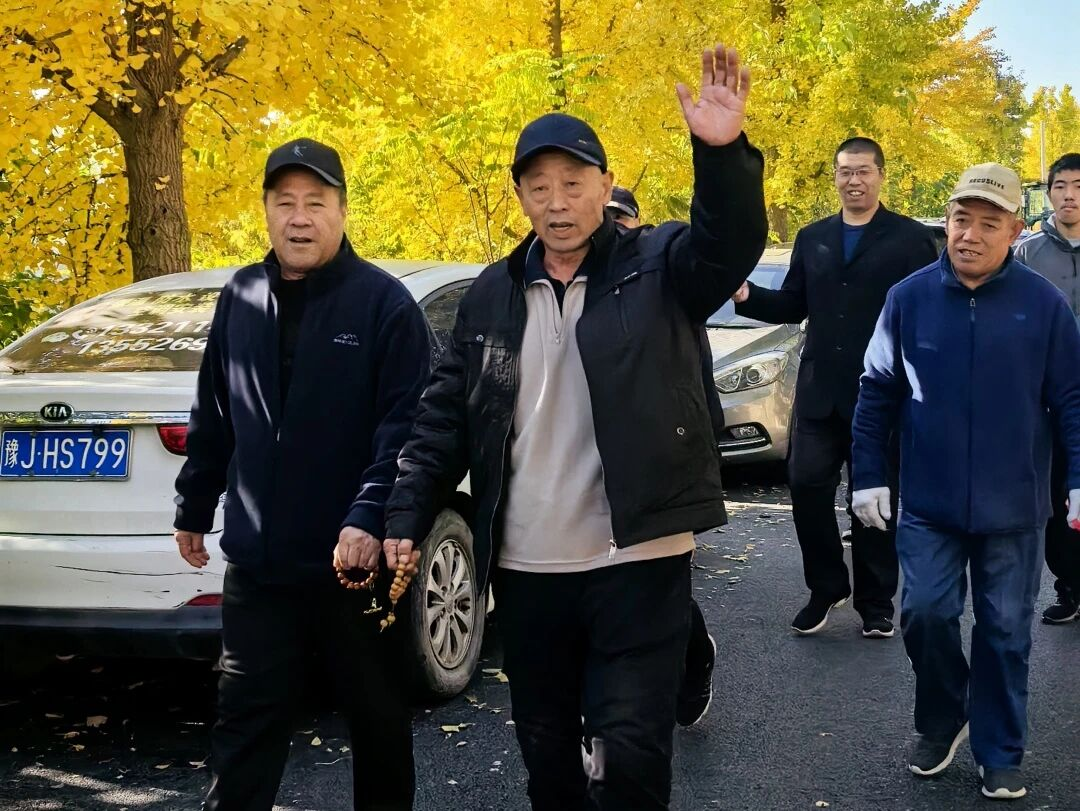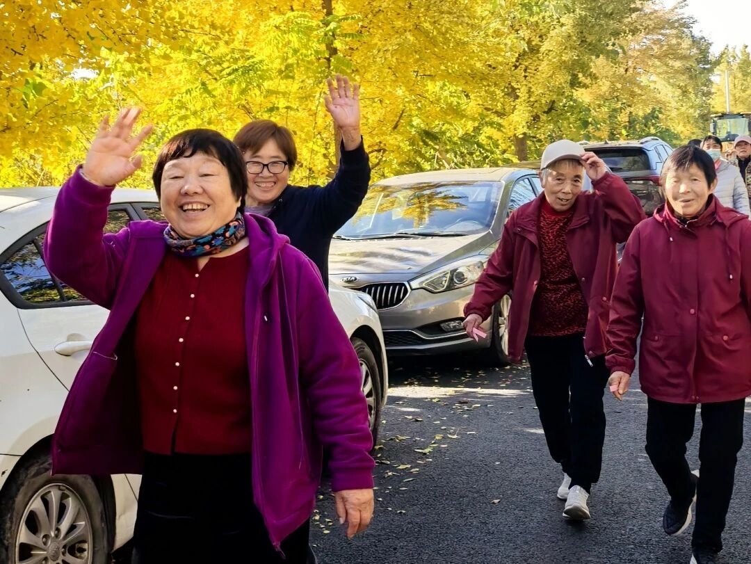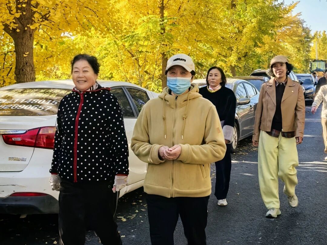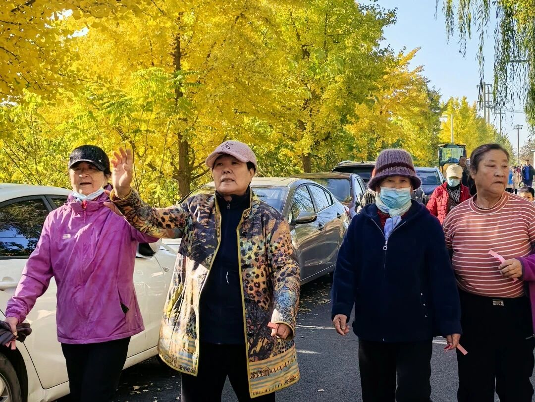 徒步途中,秋意愈发浓烈。行至泃河岸边,几株银杏树格外惹眼,金黄的叶片在阳光下闪耀,倒映在清澈的河水中,构成一幅动人的秋日画卷。村民们或驻足欣赏,或拍照留念,在运动之余尽情享受秋日美景。村委会设置的签到处、泃河闸口处两个打卡点,工作人员认真核对参与者身份,严格执行“全程徒步方可领环”规则,确保活动公平有序。