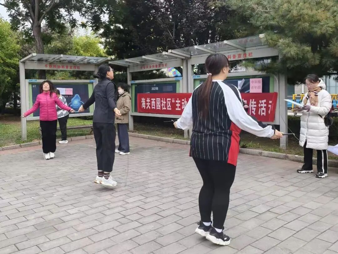 为丰富社区居民文体生活,增强身体素质,营造“全民健身、邻里同行”的社区氛围,海关西园社区居委会于2025年10月31日上午8:30在仁合小公园同步举办跳绳、踢毽子两项趣味比赛。活动以“跃动邻里情,健康伴我行”为主题,鼓励居民走出家门、以赛会友,共建活力社区。