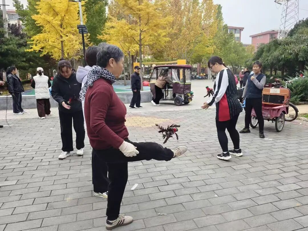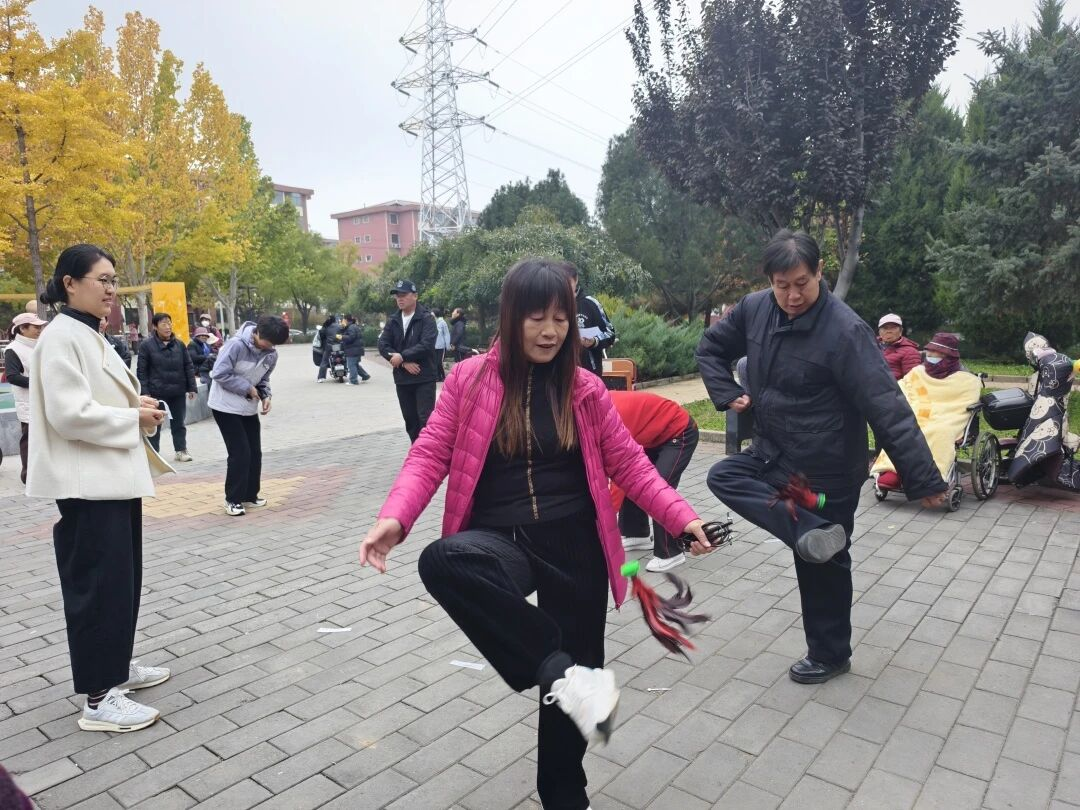 踢毽子比赛同样以一分钟为限,计数有效踢毽次数。毽子落地后可立即捡起继续,节奏紧凑、趣味十足。居民们跃跃欲试,重温童年记忆,展现灵活身手。