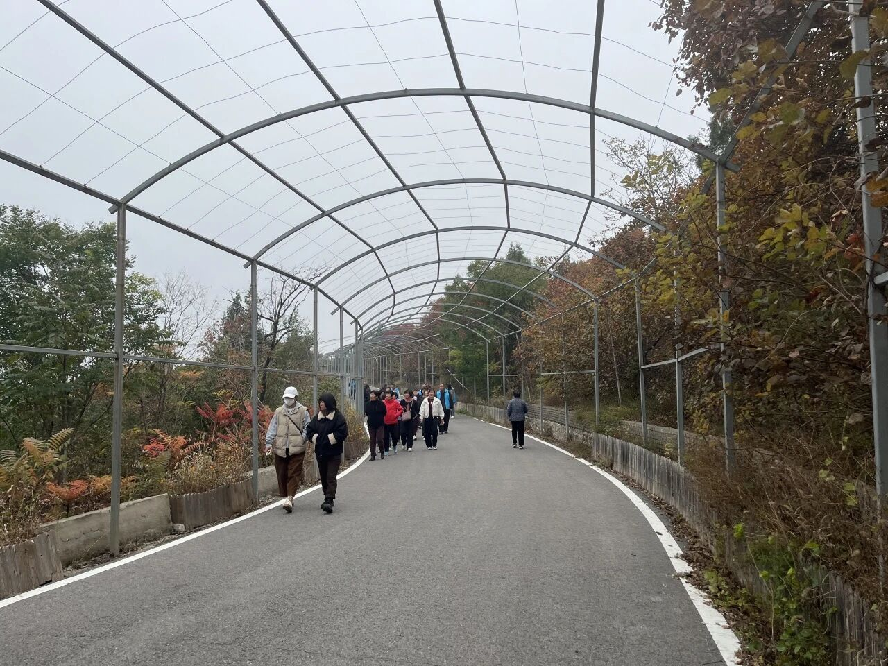 抵达景区后,在温馨家园工作人员和党员志愿者的精心组织与陪同下,大家分梯次、有秩序地向观景平台进发。漫步于蜿蜒的步道上,眼前是如火如荼的红叶、清澈的溪流和清新的空气,宛如置身于一幅流动的秋日画卷中。残疾人朋友们脸上洋溢着喜悦的笑容,纷纷驻足欣赏,拿出手机拍个不停,记录下这美好的瞬间。大家一路观景,一路说笑,交流着生活中的趣事与感悟,其乐融融,充分享受着大自然带来的宁静与美好。