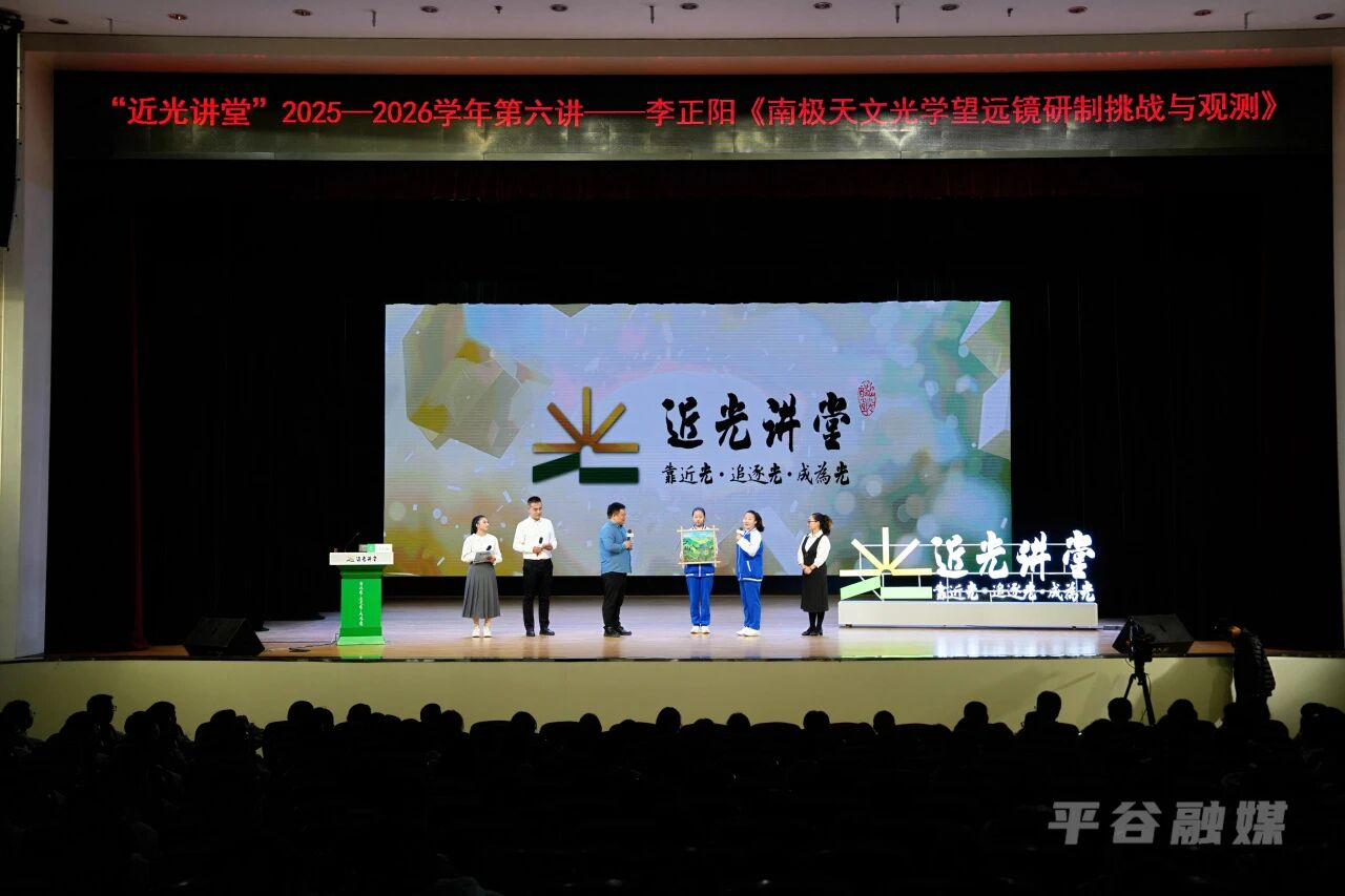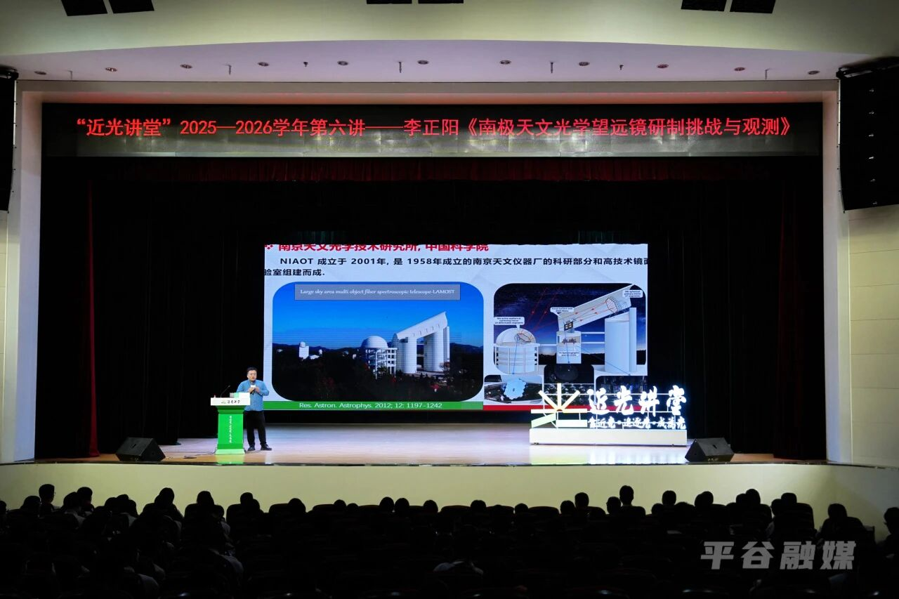 10月31日,2025-2026学年第六讲“近光讲堂”开讲。中国科学院南京天文光学技术研究所研究员李正阳以“南极天文光学望远镜研制挑战与观测”为题,带领师生们深入南极之巅,领略在极端环境中探索宇宙奥秘的壮阔历程。