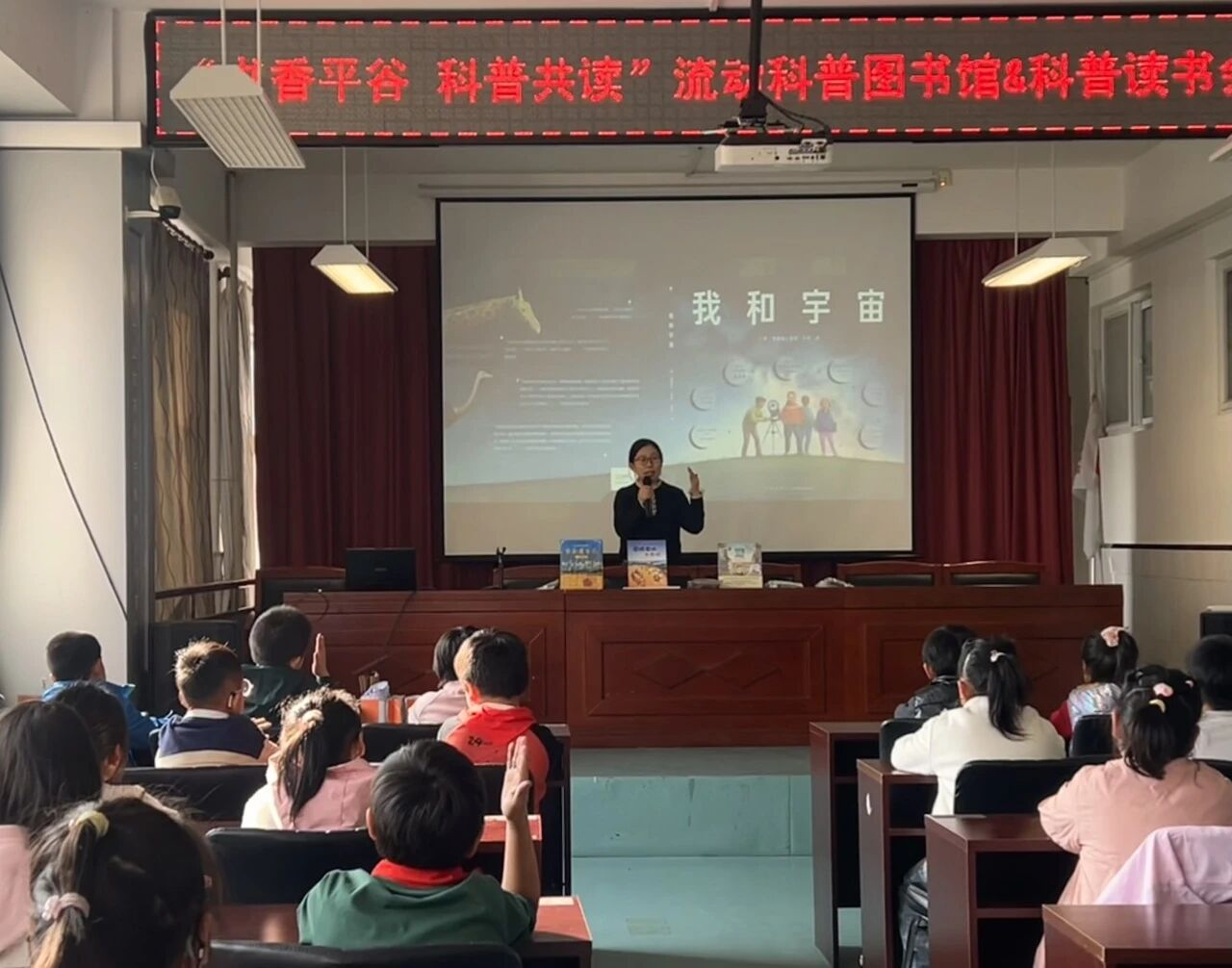“书香平谷,科普共读”活动同步展开。潘老师以生动的讲解为引,带领学生们浸润于流动图书馆的科普书香中。在思维碰撞中,科学的种子悄然萌芽,探索未知的兴趣被成功点燃。