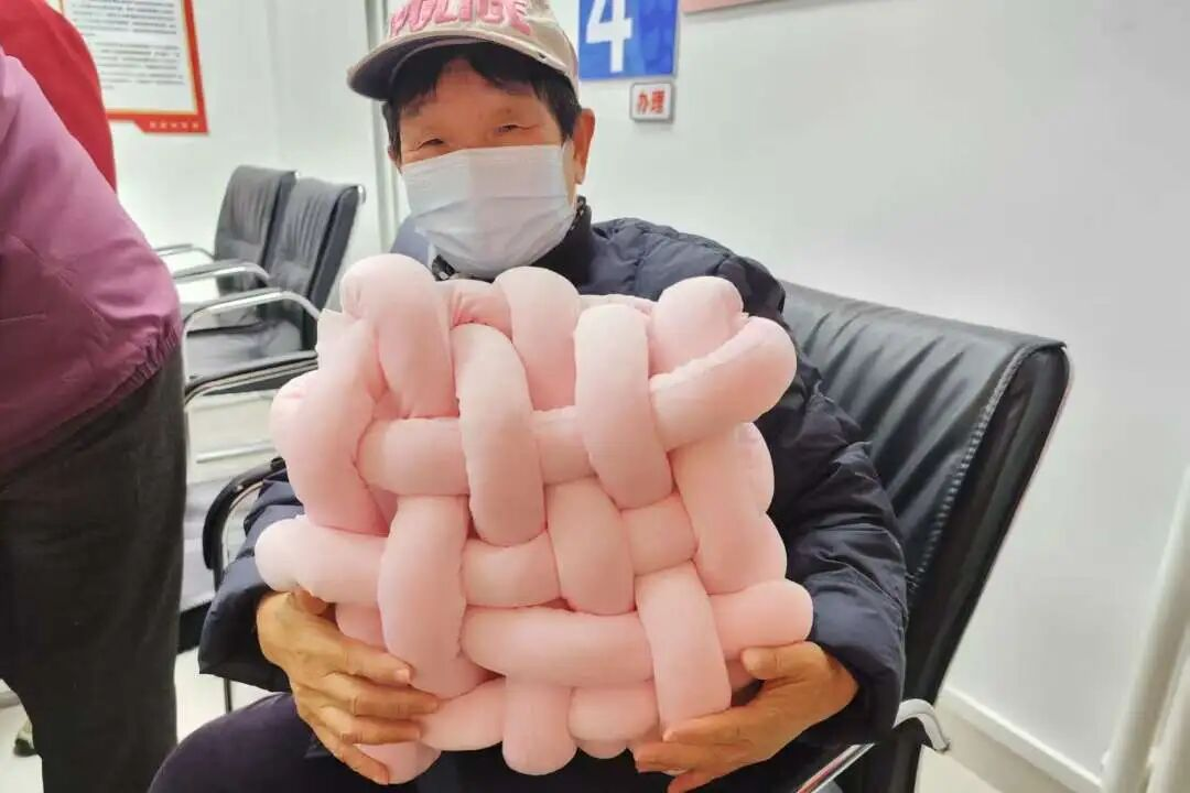 活动伊始,指导老师系统讲解了手工编织的基础知识与核心技巧,从持绳手法、基础结法讲起,逐步演示如何通过规律的编结构建出紧密而富有弹性的枕面。在老师的耐心辅导下,初次接触此项技艺的居民们从略显生疏到逐渐熟练,手中的棉绳在一绕一拉之间,逐步交织出密实而美观的纹理。现场气氛温馨融洽,大家互帮互助,积极交流编织心得,在指尖的往复穿梭中,不仅亲手完成了各具特色的抱枕作品,更在专注制作的过程中放松了身心,愉悦了心情。