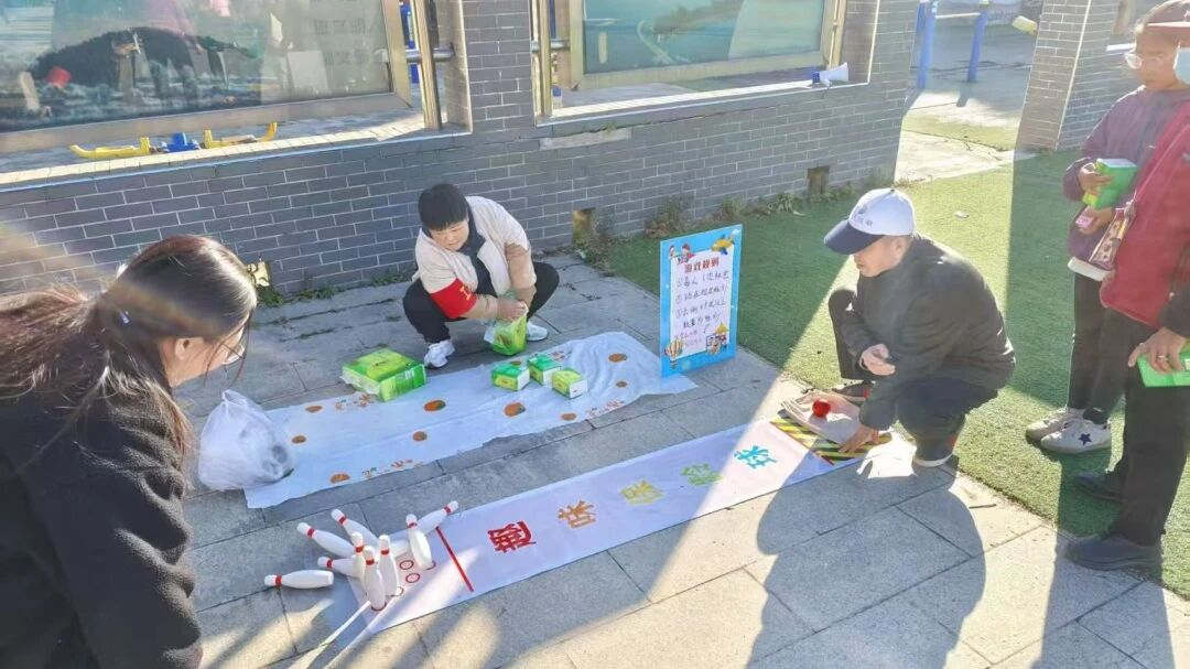 活动现场,三大年龄板块的项目各有亮点。青少年区里,孩子们握着球杆瞄准保龄球,盯着摇摆的电动大鹅投掷套圈,挥动钓竿“钓锦鲤”,稚嫩的笑声此起彼伏;成年人区的“双人夹球跑”考验默契,“筷子夹球”比拼手速,“蒙眼敲锣”充满趣味,参赛者全力投入,围观村民的加油声不绝于耳;老年区的“原地踏步”“幸运滚滚乐”轻松休闲,“欢乐五子棋”对弈平和,长辈们在慢节奏中享受运动乐趣。
