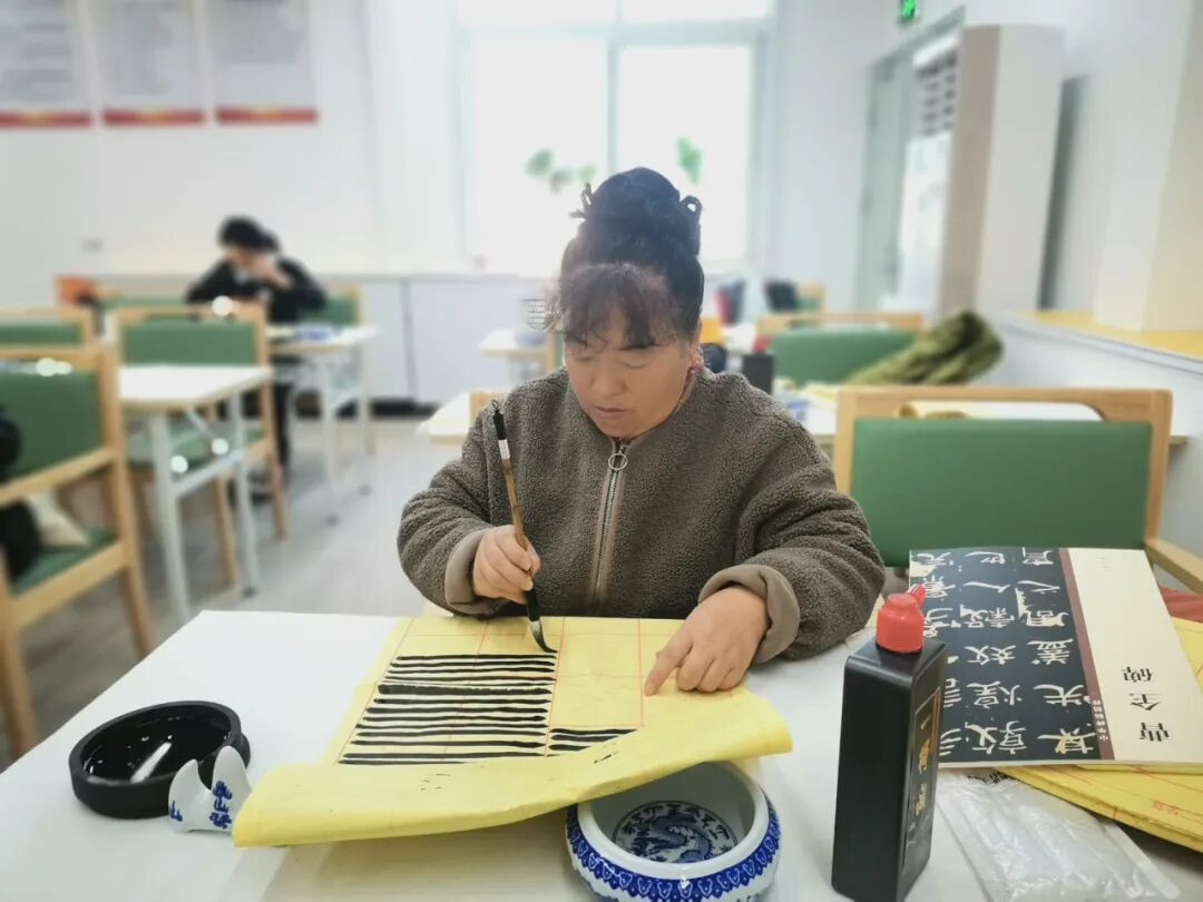 三堂课的时间里,书法课堂成了学员们心中的“充电站”。大家互相交流心得,分享练习中的小技巧,原本略显羞涩的身影,渐渐变得自信开朗。有人说,练习书法让自己静下心来,忘记了生活中的烦恼;有人说,和伙伴们一起学习的时光特别快乐,还收获了新的友谊。