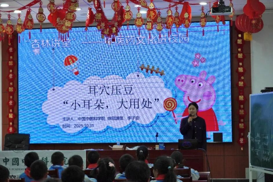 为传播中医药文化,普及中医养生保健知识,服务基层群众,中国中医科学院研究生院“杏林智博团”社会实践团队深入平谷,于2025年10月31日在平谷区第一小学举办“杏林讲堂”健康科普志愿服务活动、11月2日在平谷区中医医院进行“平谷杏林慢病管家”主题义诊活动。研究生团队成员通过理论讲解+生动有趣的互动体验,让小学生们近距离感受中医外治疗法的神奇魅力,培养健康生活理念;在中医院开展以中医药服务为核心的创新志愿活动,助力基层健康服务能力提升,推动中医药文化传播,活动取得圆满成功。