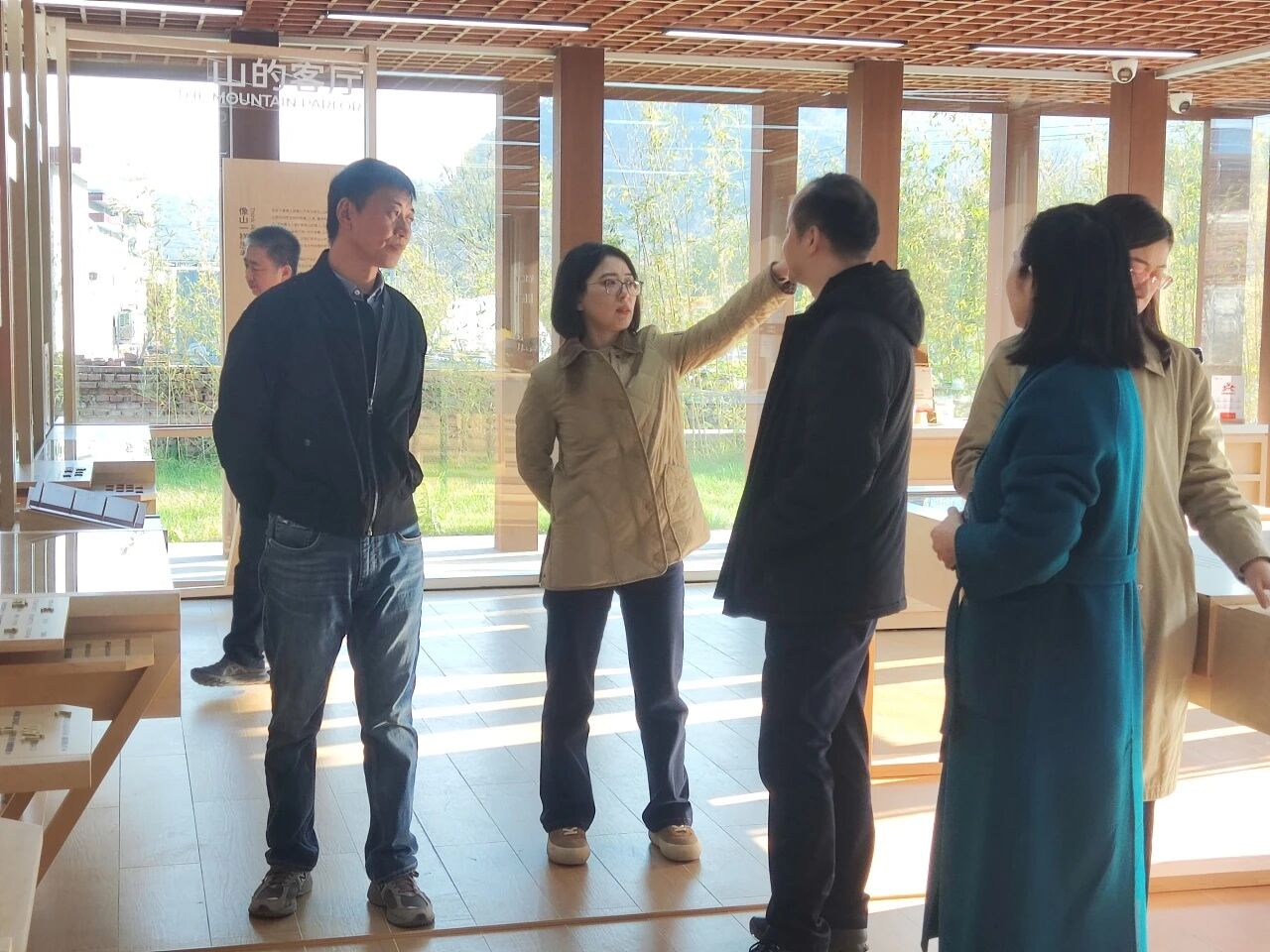 在“山的客厅”里,通过老照片、实物陈列、多媒体展示等方式,生动呈现了鱼子山在革命时期的红色故事与新时代的乡村建设成果。同时,大讲堂作为政策宣讲、技能培训、文化活动的重要平台,为村民赋能、乡村提质提供了空间支撑。调研过程中,洪炜局长一行还与陪同人员围绕“集体产业运营”“闲置资产盘活”“设计赋能实践”等话题展开深入交流。