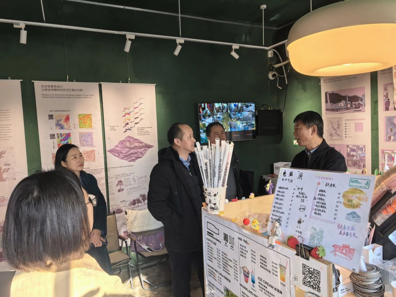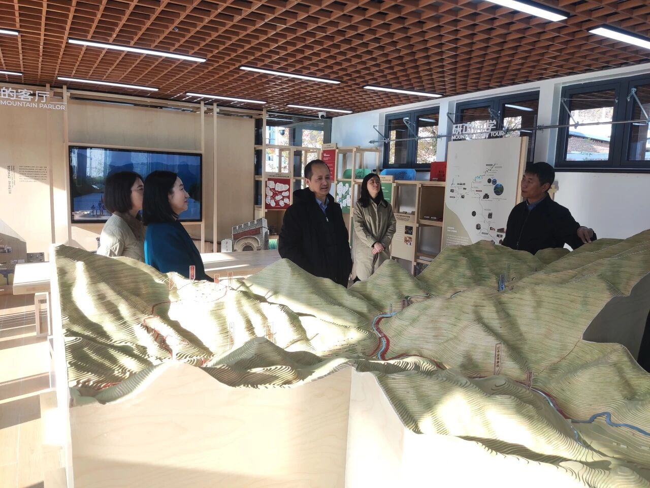 调研团队沿着夏鱼路,先后走进电站美术馆、蝴蝶生态艺术馆、“山的客厅”展览、与子山谷菜等核心点位,通过实地察看、现场交流、听取介绍等方式,全方位了解鱼子山村在设计赋能乡村振兴领域的创新探索。