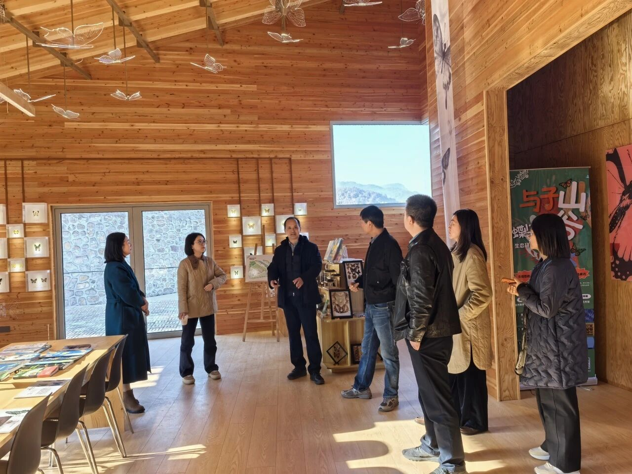在电站美术馆,杨金宇书记详细介绍了其建设由来和在地化运营情况。该美术馆由村内闲置电站改造而来,在保留原有建筑肌理的基础上,融入现代设计理念,不定期举办艺术作品展示等活动,逐渐成为鱼子山村打卡新地标。随后,调研团队来到蝴蝶生态艺术馆,深入了解如何结合乡村生态资源,打造沉浸式和体验式的场馆,进一步促进乡村产业多元化发展。