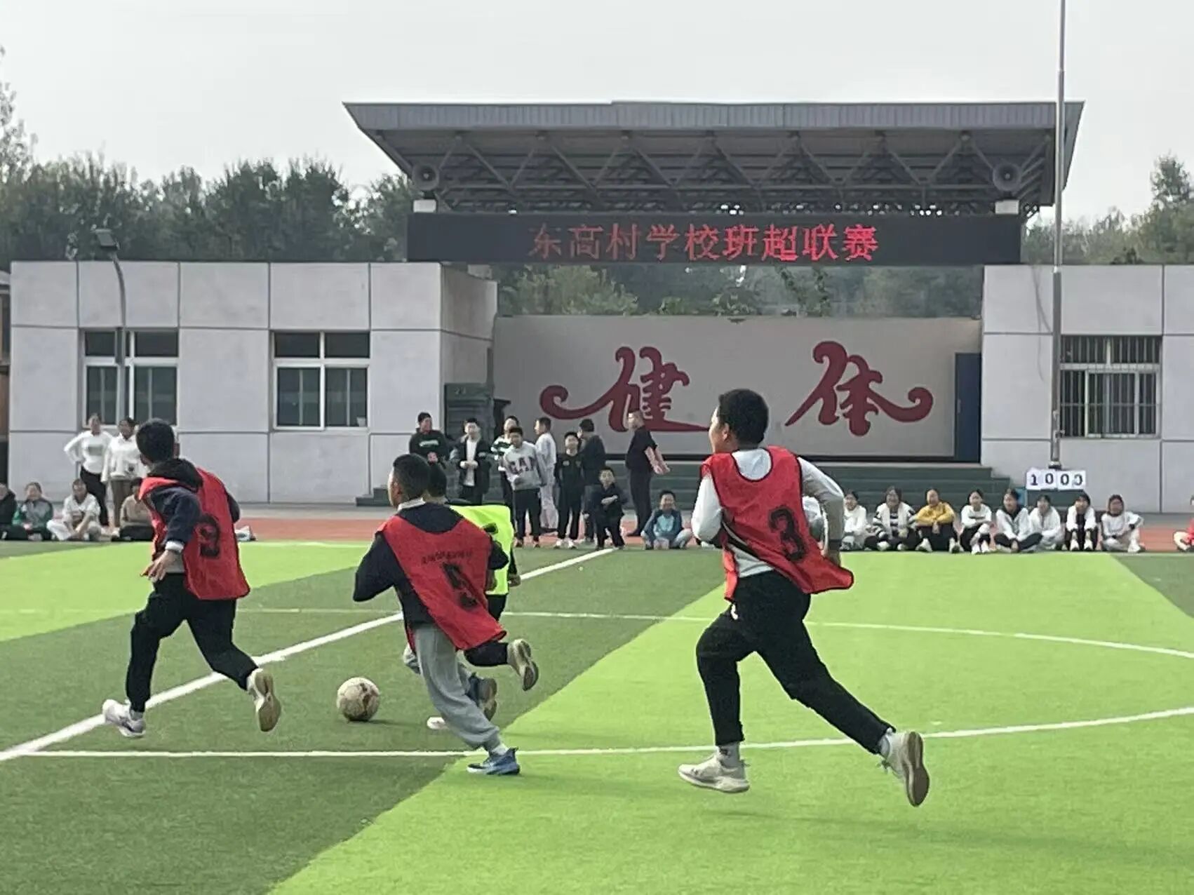 东高村学校组织初一、初二116名中学生,开展24场班级足球联赛。赛场上,队员们奔跑、拼抢、进攻、防守,你追我赶,配合默契,每回合都展示力量和智慧,每分钟都充满紧张和刺激。场下的同学们也不甘落后,他们用自己的方式参与到比赛中来,组织啦啦队加油助威,体现了班级团结一致的精神。