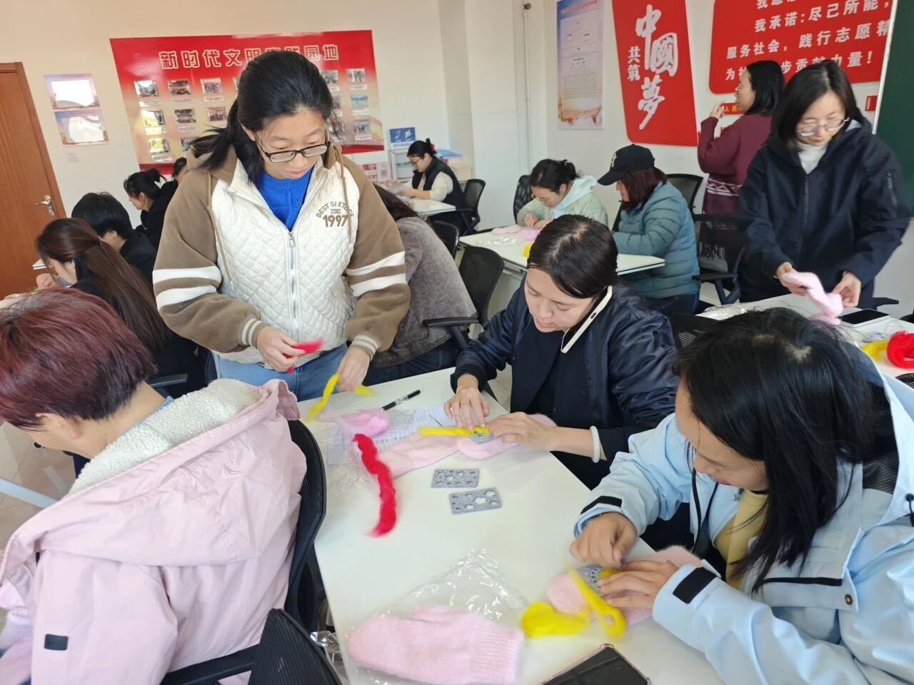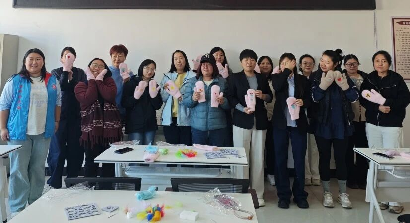 随后的“巧手制暖”毛毡手套DIY环节妙趣横生。在指导老师的示范下,大家穿针引线、精心缝制,互相交流协助,场面温馨有序。不多时,一双双独具匠心、温暖可爱的毛毡手套陆续完成,大家手捧作品,脸上洋溢着自豪与喜悦。