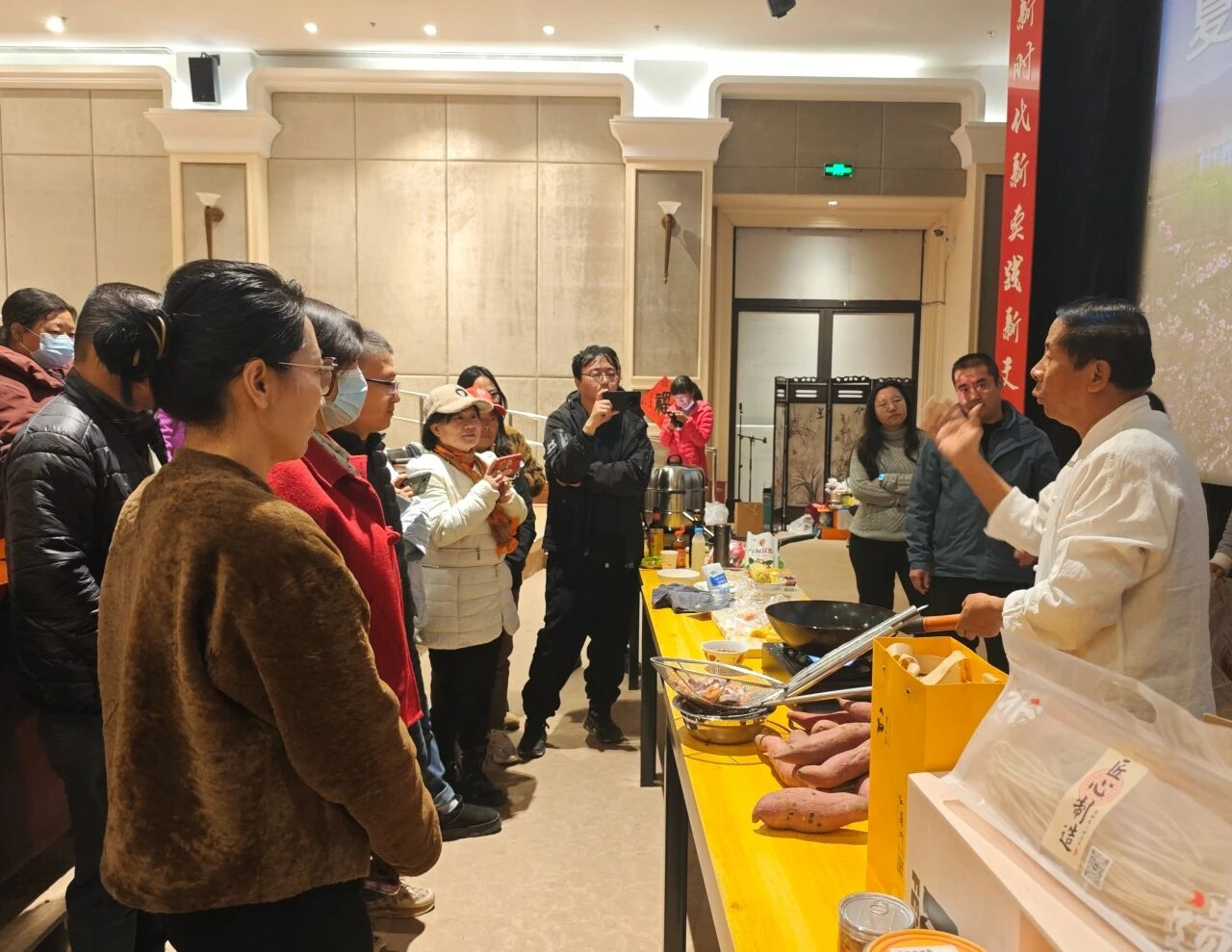 王云现场演示了“香辣御薯”与“扣三丝”的制作。从红薯切条、颠炒调味,到切丝码盘、扣制定型,直观的流程让学员们迅速掌握了“一薯多吃”的烹饪要领。