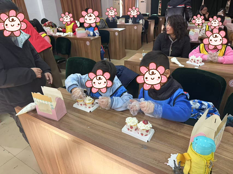 活动现场,孩子们在老师和志愿者的引导下,积极参与纸杯蛋糕制作。大家认真涂抹奶油、精心点缀装饰,充分发挥想象力与创造力,在轻松愉快的氛围中完成了一次手、眼、脑协调配合的实践锻炼。整个过程充满欢声笑语,让孩子们在动手实践中感受到劳动与创造的乐趣。
