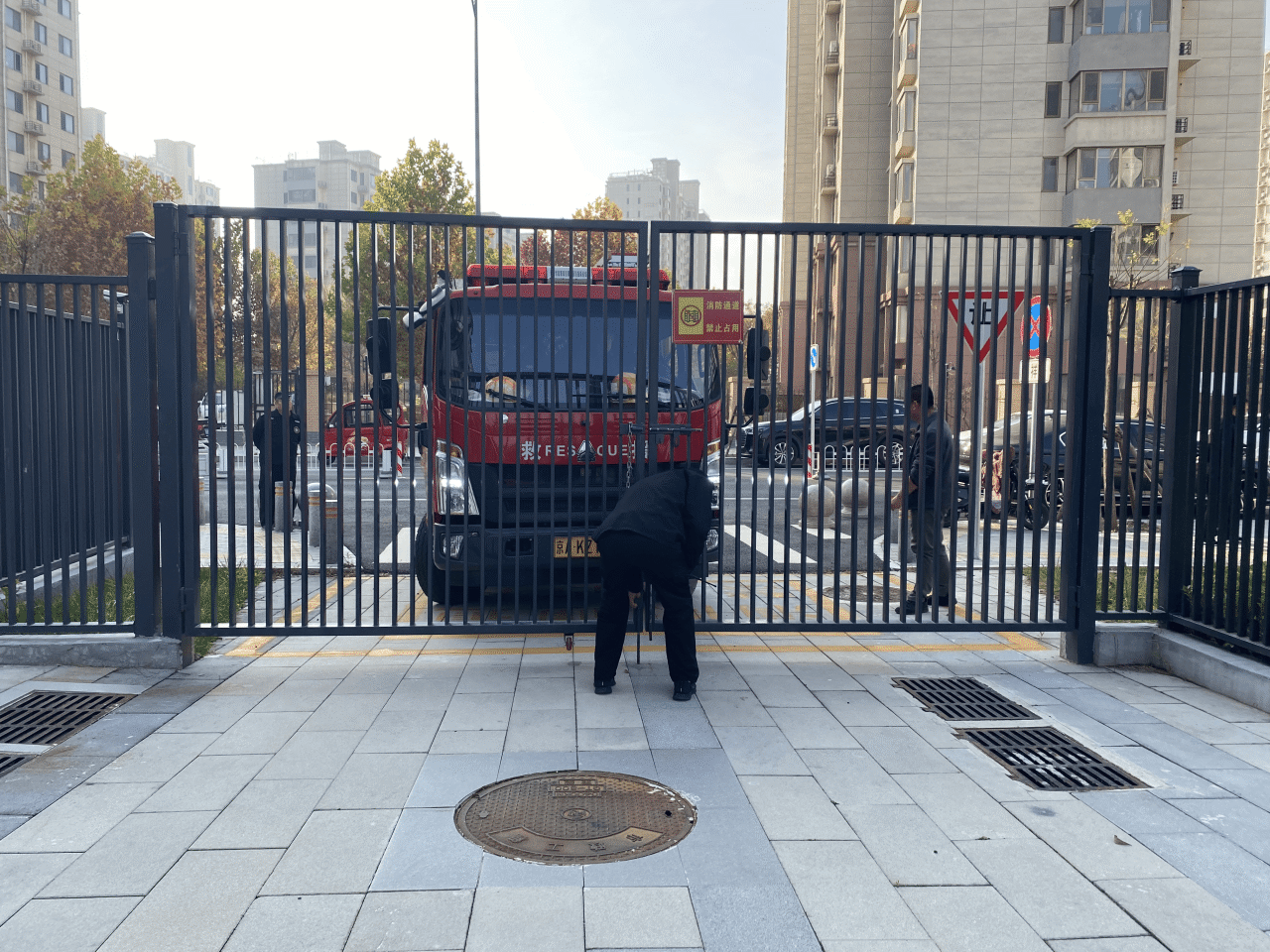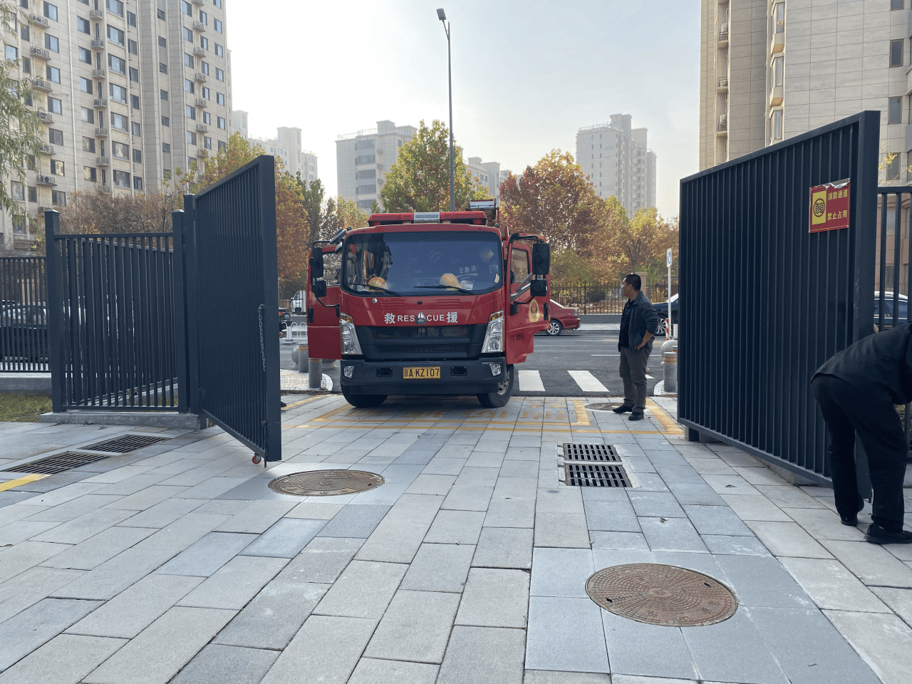 与此同时,巡逻岗安保人员第一时间打开消防通道,确保消防车辆顺利进入小区,并在门岗处指引路线,为后续联动处置做好准备。