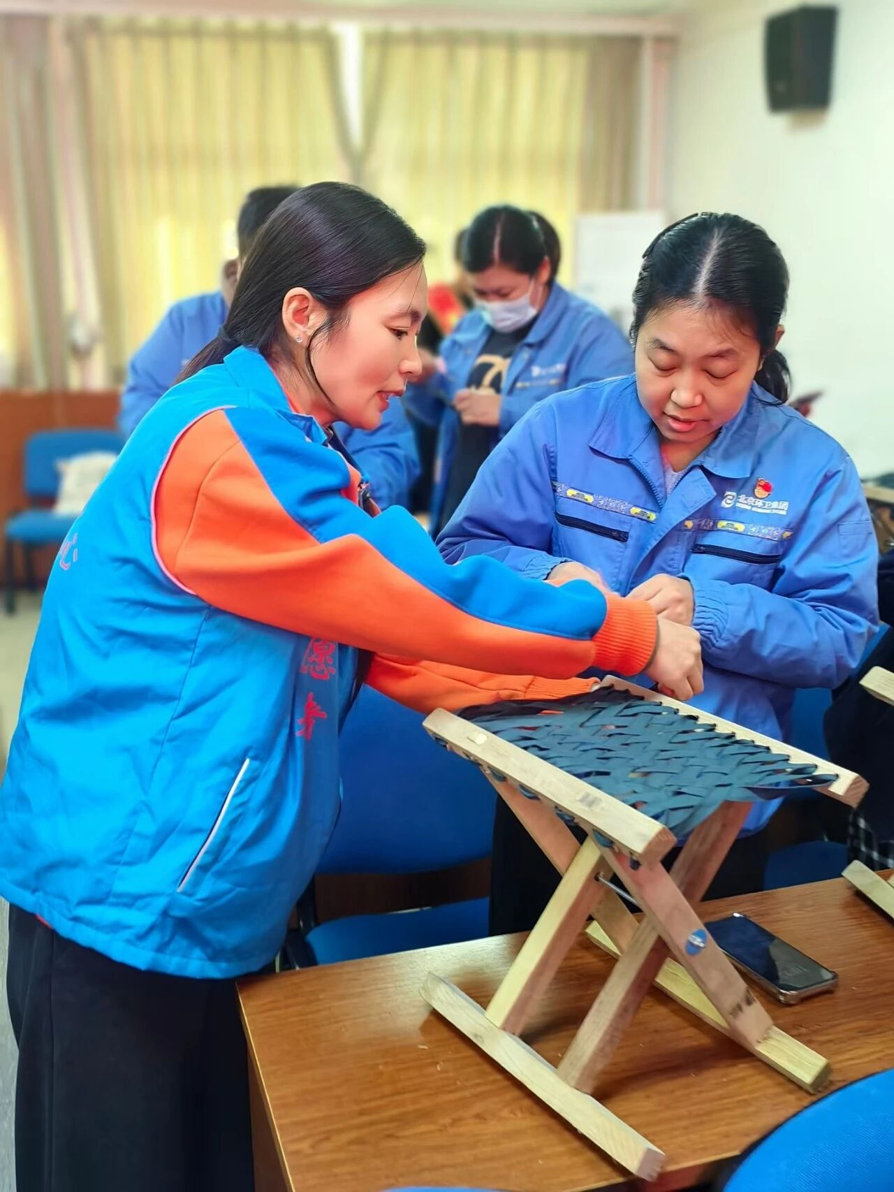 活动现场温情满溢、暖意融融。榜样们与环卫工人们促膝长谈,不仅分享“城市扮靓、文明健康、垃圾分类”的理念新风,更用实际行动传递关怀。指尖翻飞间,一个个承载着安稳与贴心的“小马扎”逐渐成型,这小小的物件里,织就着对环卫工人日夜辛劳的感念,也奏响了城市文明与守望相助的和谐乐章。