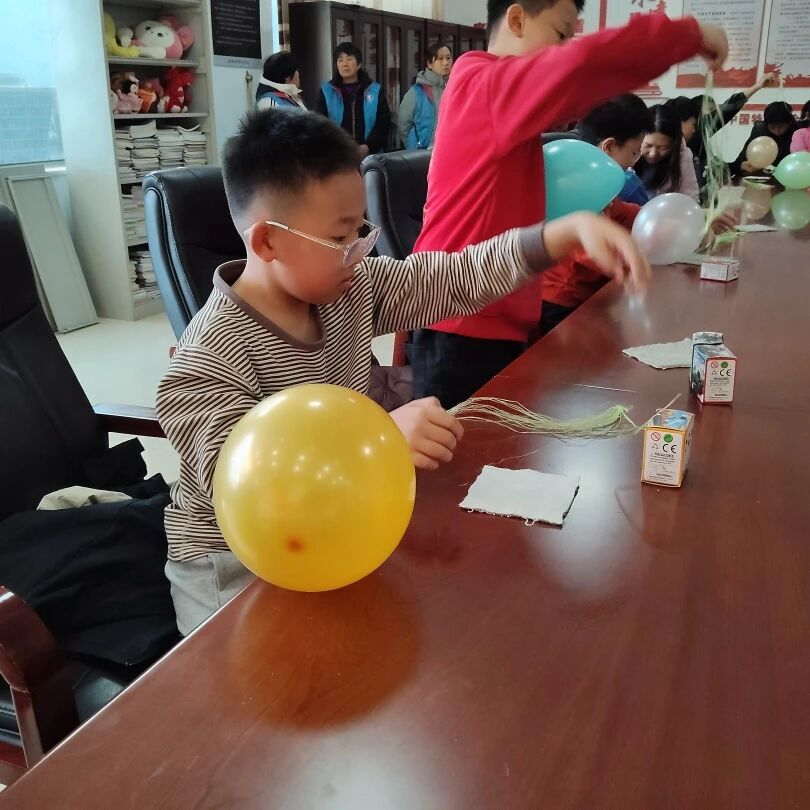 本次活动以“玩中学”为核心理念,环节设计兼具知识性与趣味性。开场通过科普讲座、暖场舞蹈与互动游戏点燃现场气氛。随后的科学小课堂环节中,“水果电池”与“摩擦起电”实验成为全场亮点。在摩擦起电实验中,孩子们亲自动手,用皮毛摩擦气球与尼龙绳,观察到两者因带同种电荷相互排斥的现象,直观理解了静电原理。