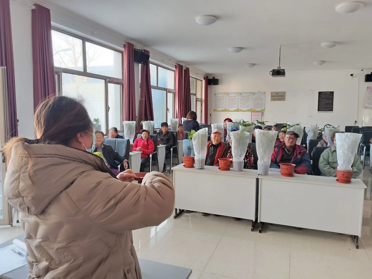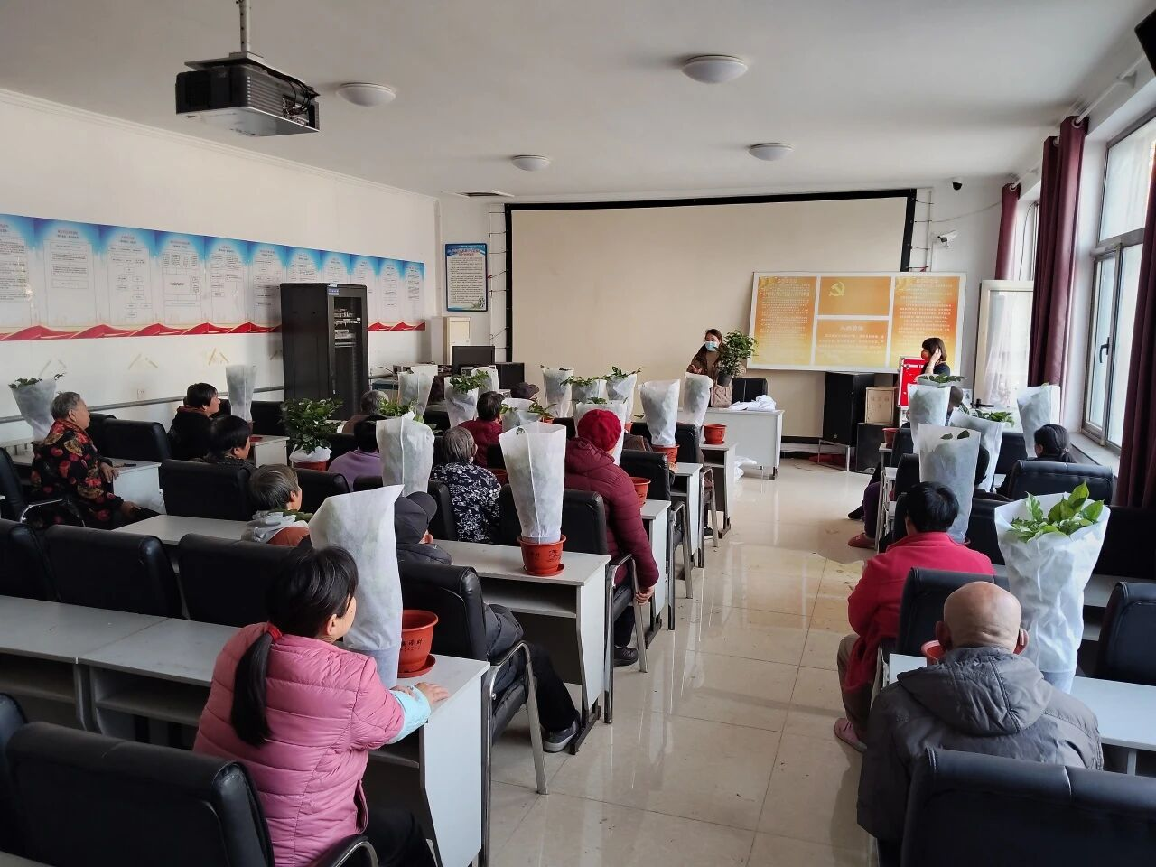 活动中,工作人员为大家备齐绿植幼苗、花盆及营养土等物料,讲解种植步骤与养护常识。在随后的动手环节中,大家相互交流心得,分享对“幸福树”的美好期许。