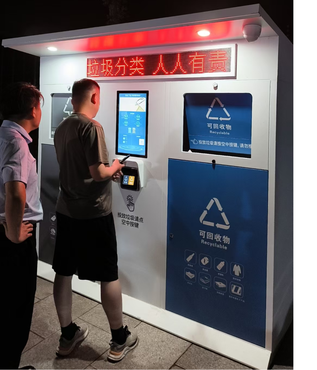 三是科技赋能提效,构建智慧监管体系。持续深化垃圾分类基础设施智能化升级,截至目前已建成智能桶站建设63个。其中分类桶站29个、智能回收箱34个,以科技赋能提升分类管理精细化水平。通过实时监控、满溢报警和数据溯源功能,实现对垃圾分类全流程的精准管控。智能设备接入区级监管平台,做到投放行为可追溯、分类数据可分析、问题环节可预警,大幅提升管理效率与透明度。