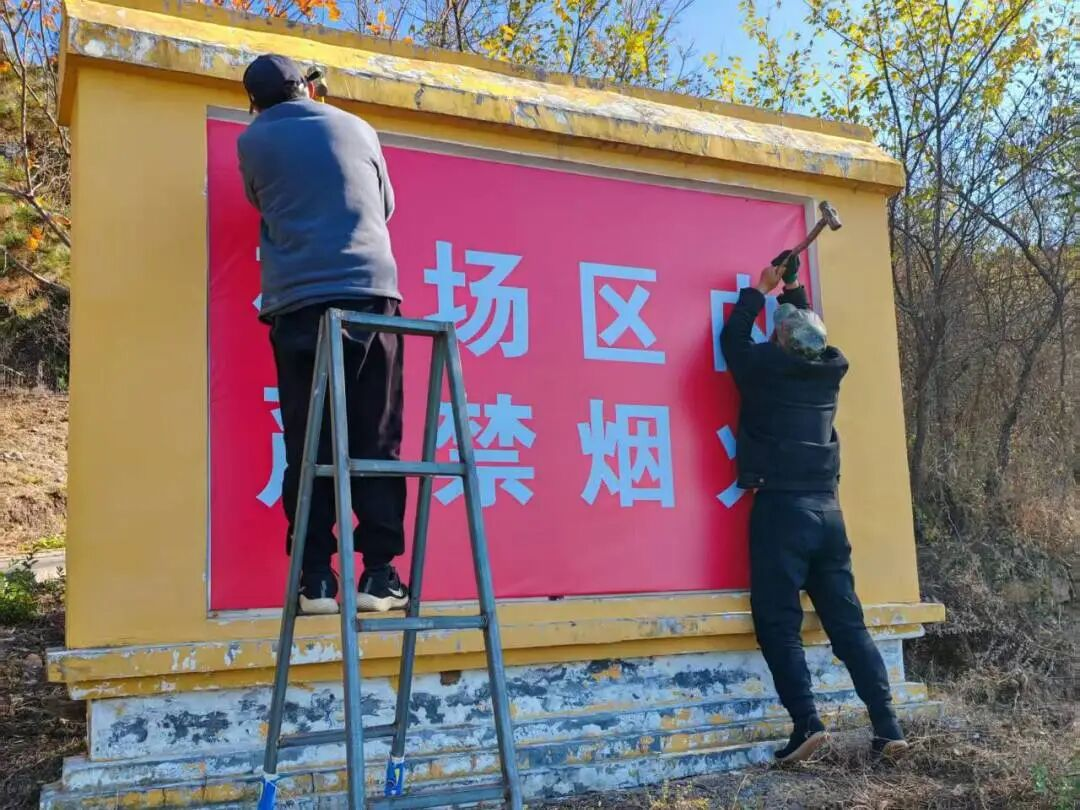 东高村镇严格落实林长制,紧扣“预防为主、防灭结合”方针,集中开展山区防火设施焕新行动。行动覆盖辖区主要进山路口、重点林区,全面更新升级防火碑、防火牌、宣传横幅及制度公示牌,以“看得见的提醒、摸得着的责任”,为1.8万亩山区林地筑牢安全屏障。