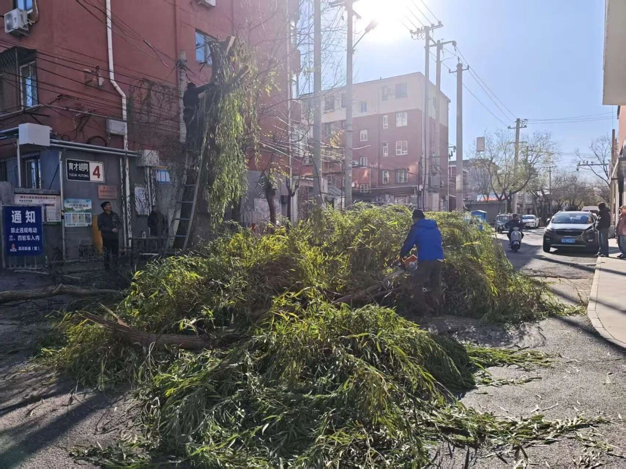 经过多轮沟通协商,居民们最终达成共识,同意伐树方案。施工当天,社区工作人员提前在现场设置明显警示标识,在周边路段维护秩序,引导过往行人和车辆安全绕行;专业工人按照规范流程,安全高效完成歪柳砍伐及树桩清理工作。下一步,社区将加快推进新树苗的选购与栽种,持续做好后期绿植养护管理,用实际行动为居民打造安全、舒适的居住环境。