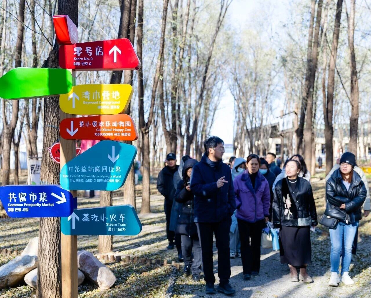 在农文旅融合的探索之路上,平谷的实践让研学团眼前一亮。大兴庄镇桃源里欢乐田园打造的 “从田间到餐桌、从农业到健康” 一站式消费场景,林下休闲、稻田游览等丰富业态,展现了农业与健康、休闲的多元融合;国农港供销村播产业园的电商直播全链条运营模式,在助农惠农、企业孵化方面的创新举措,为农产品上行、乡村产业增收提供了新路径;峪口镇蔡坨村村咖花卉园以村为载体,衔接资源与青年创业、科研人才需求,形成的产业协同发展格局,让 “村庄变花园、资源变资产” 的愿景成为现实。