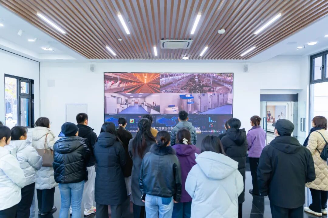 研学团紧扣产业发展核心,沉浸式感受平谷产业升级的强劲动能。在马坊镇东久新宜智慧城市物流谷,现代物流体系与区域经济的深度融合,为研学团呈现了产业链构建与枢纽经济发展的鲜活样本;马昌营镇宠物文化产业园里,"一镇一宠物园"的特色布局,以及宠物培训、文旅休闲与产业集聚的融合模式,为大兴宠物经济全产业链建设提供了宝贵参考;在京瓦中心,借助沙盘演示与宣传视频的沉浸式讲解,团队全面掌握农业中关村园区规划布局、创新平台建设、重点农业科研项目落地等核心内容,随后实地考察蔬菜生物育种全国重点实验室、苏陀科技等入驻企业,近距离观摩前沿科技研发流程与成果转化实效,深刻感受“农业+科技”的融合赋能魅力。在峪口镇峪口禽业的智慧蛋鸡大数据平台,让科技赋能传统农业的力量直观可感,为现代农业创新发展打开新思路。