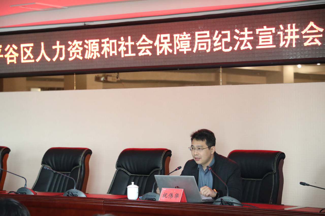 11月19日,平谷区人力资源和社会保障局组织召开纪法宣讲大会,旨在持续深化党风廉政建设,进一步增强干部职工纪律意识和法治观念,让干部职工受警醒、明底线、知敬畏。区纪委常委、区监委委员祝伟华应邀出席并作专题授课。区人力资源社会保障局全体干部职工参会。