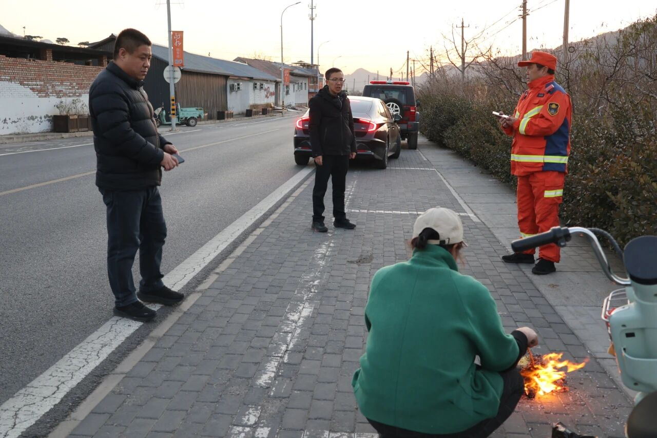 巡查组深入镇域内街坊路、田间路等重点区域,细致排查各路段安全状况,重点关注焚烧点位、堆积可燃物等火灾隐患点。巡查过程中,对个别村民在路边焚烧纸钱的行为,工作人员及时上前耐心劝导,讲解消防安全知识,引导大家采用鲜花祭祀、无纸化追思等更文明、更安全的祭奠方式。针对发现的易燃物堆积问题,巡查人员迅速协调清理,及时消除安全隐患。