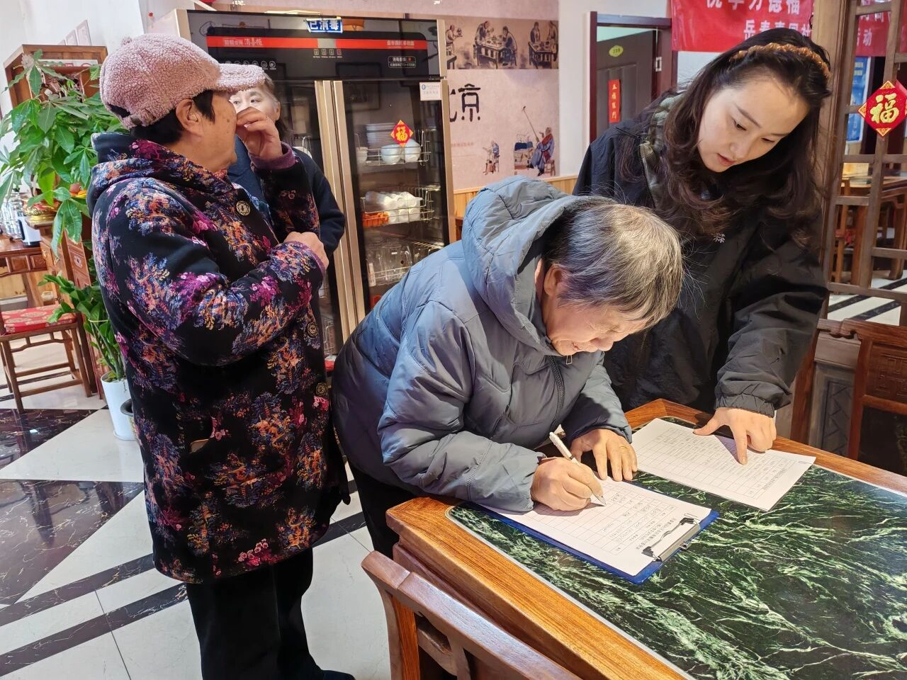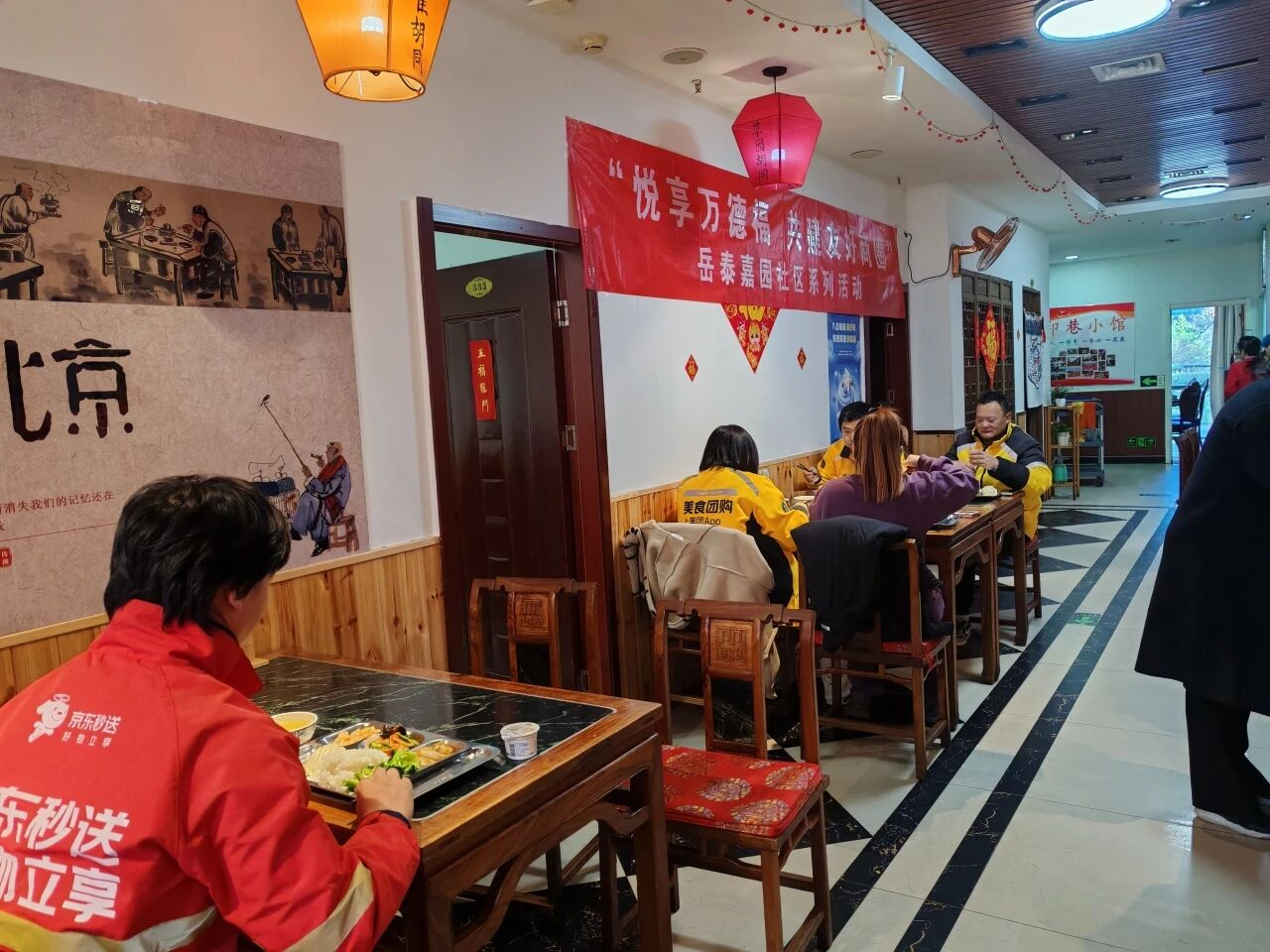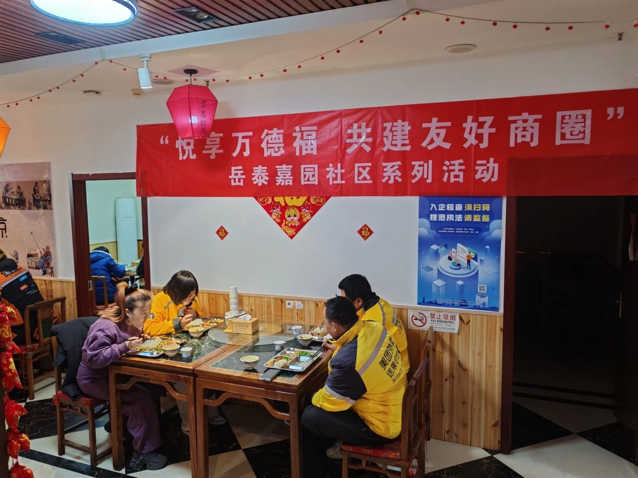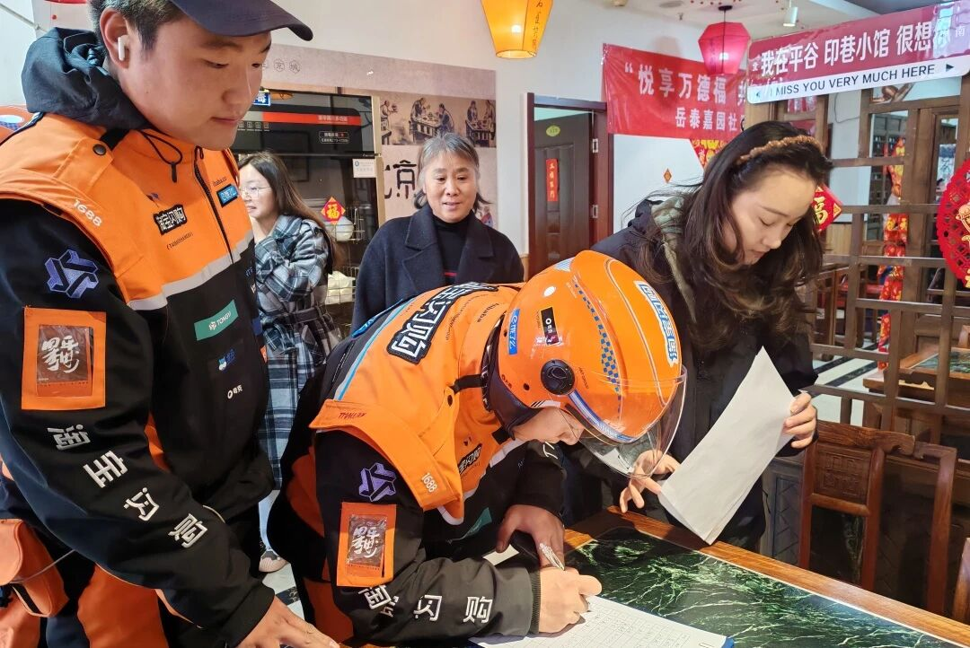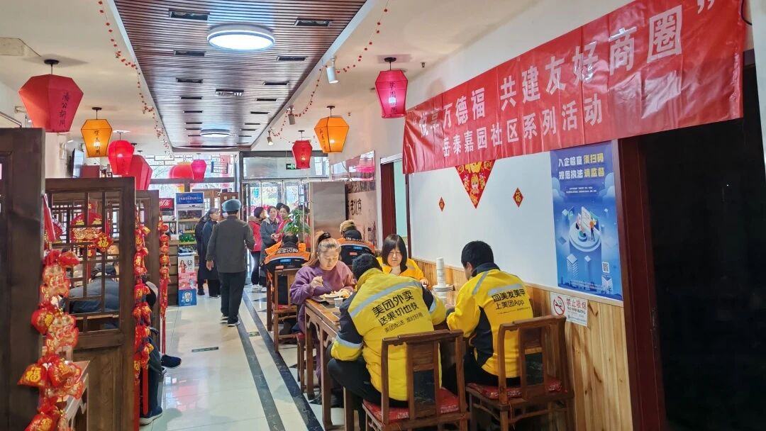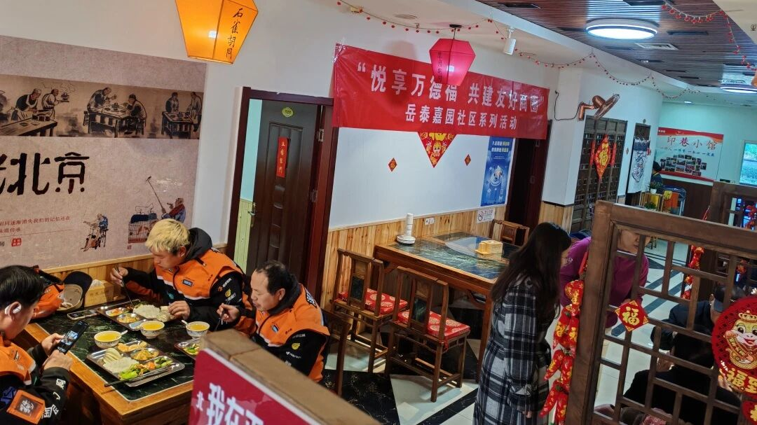 岳泰嘉园社区统筹辖区资源,依托印象小馆的餐饮专业优势,构建外卖员、快递员、周边商户、特殊老年人助餐服务设施和服务网络,设立社区食堂,邀请各类人员品鉴菜品,打造助餐服务圈,满足大家的用餐需求。