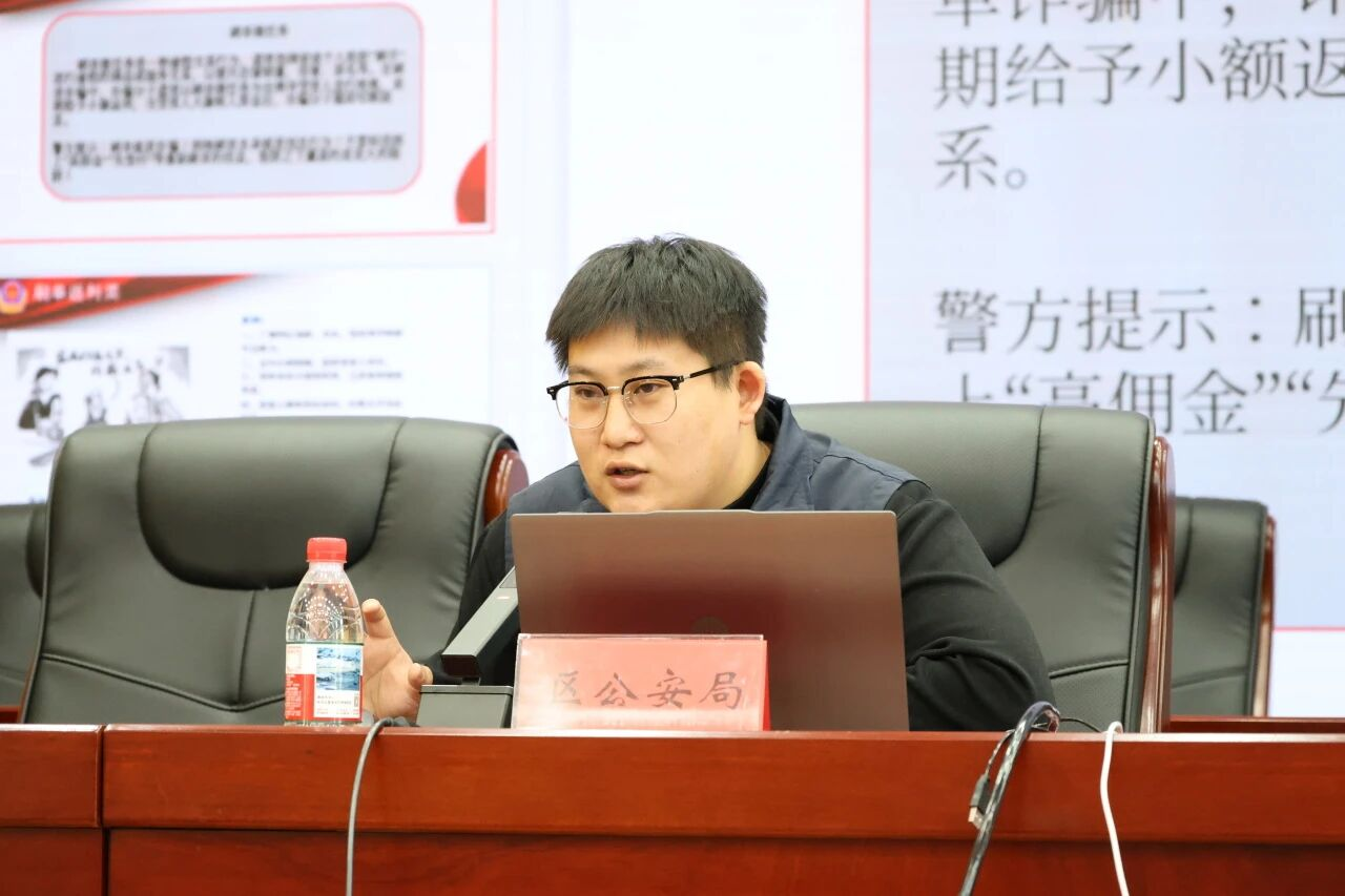 活动现场干货满满,区公安局针对当前高发的刷单返利、远程控制、虚假购物服务、婚恋交友诈骗及网络平台投资陷阱等类别,精准揭秘诈骗分子的套路手法——从“小利诱惑”到“远程操控”,从“甜言蜜语”到“高息陷阱”,结合真实案例拆解诈骗逻辑,让参会人员看清骗局本质。