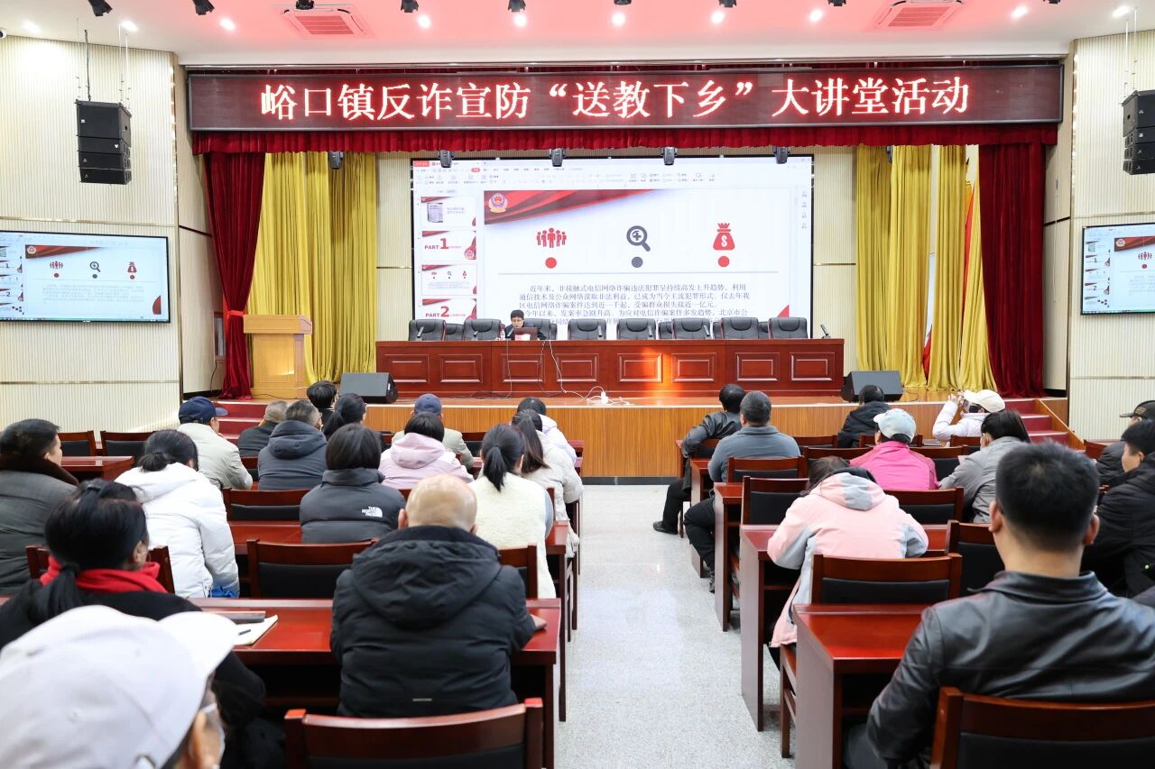 11月19日,峪口镇举办反诈宣防“送教下乡”大讲堂活动,区公安局专家现场“传经送宝”,各科室工作人员、各村治保主任及网格员参加,共同为守护群众“钱袋子”充电赋能。