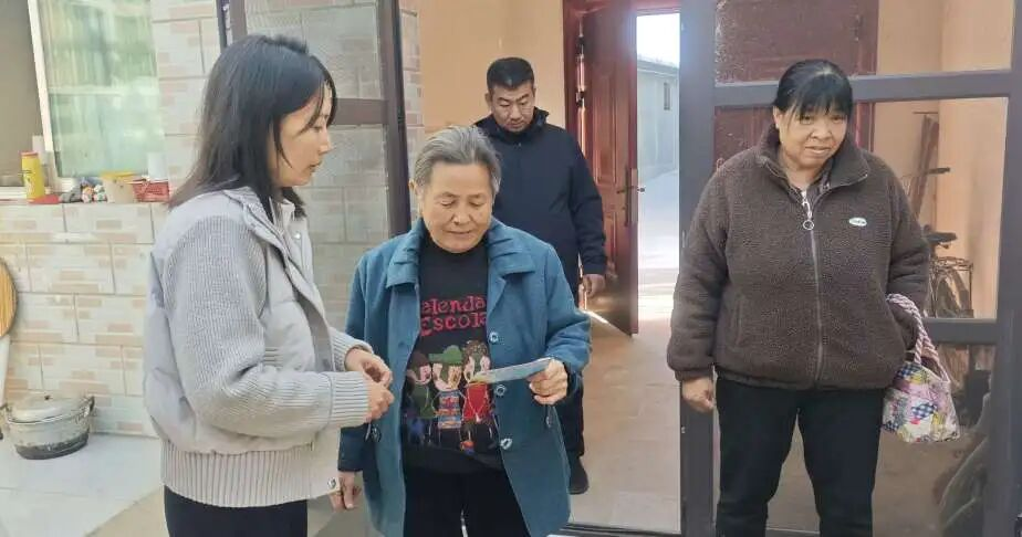 曹家庄村为打通服务村民的“最后一公里”,开展便民服务专项行动。村两委逐户上门发放便民联系卡,卡上清晰标注村“两委”成员及相关负责人联系方式,工作人员还贴心叮嘱:“您收好这张便民卡,上面有村两委电话,不管是急事难事,还是政策疑问,随时找我们!”