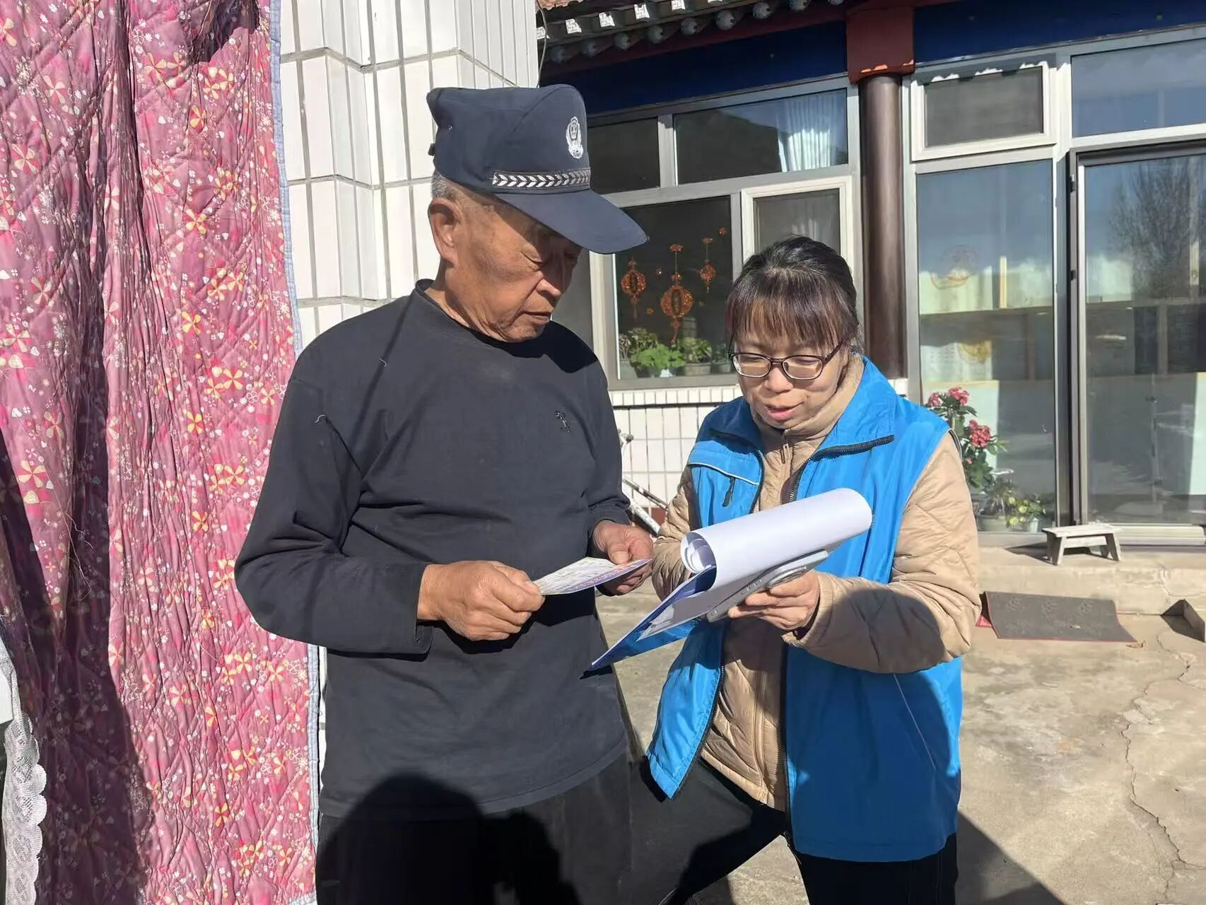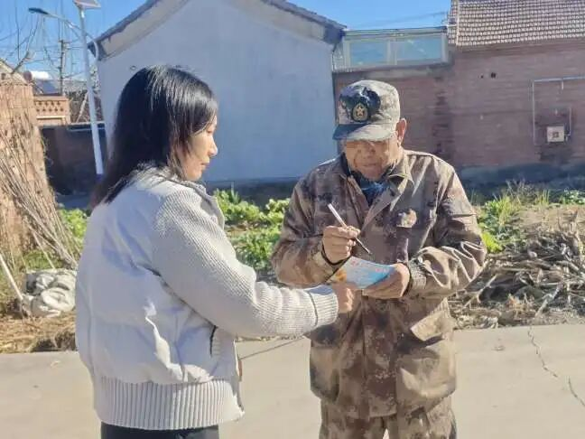 这张巴掌大的卡片,承载的却是村“两委”沉甸甸的责任。它不仅是亮明村干部身份的“名片”,更是破解群众办事难题的“钥匙”,如同一条温暖的纽带,在干群之间架起了“零距离”沟通的桥梁。此次入户行动并非“单一送卡”,同步开展“民情民意”问卷调查工作,实现“一次上门、多项服务”。内容涵盖村民对村内公共服务、干部作风、村庄规划等多方面的评价与建议。针对不同村民情况,工作人员采取差异化填写方式:识字且方便书写的,指导其自行填报;年长或书写不便的,则逐条念读问卷,按其口述意愿代为记录。全程兼顾实用性与人文关怀,确保每一位村民的声音都能被准确捕捉,每一份问卷都能真实反映民情。