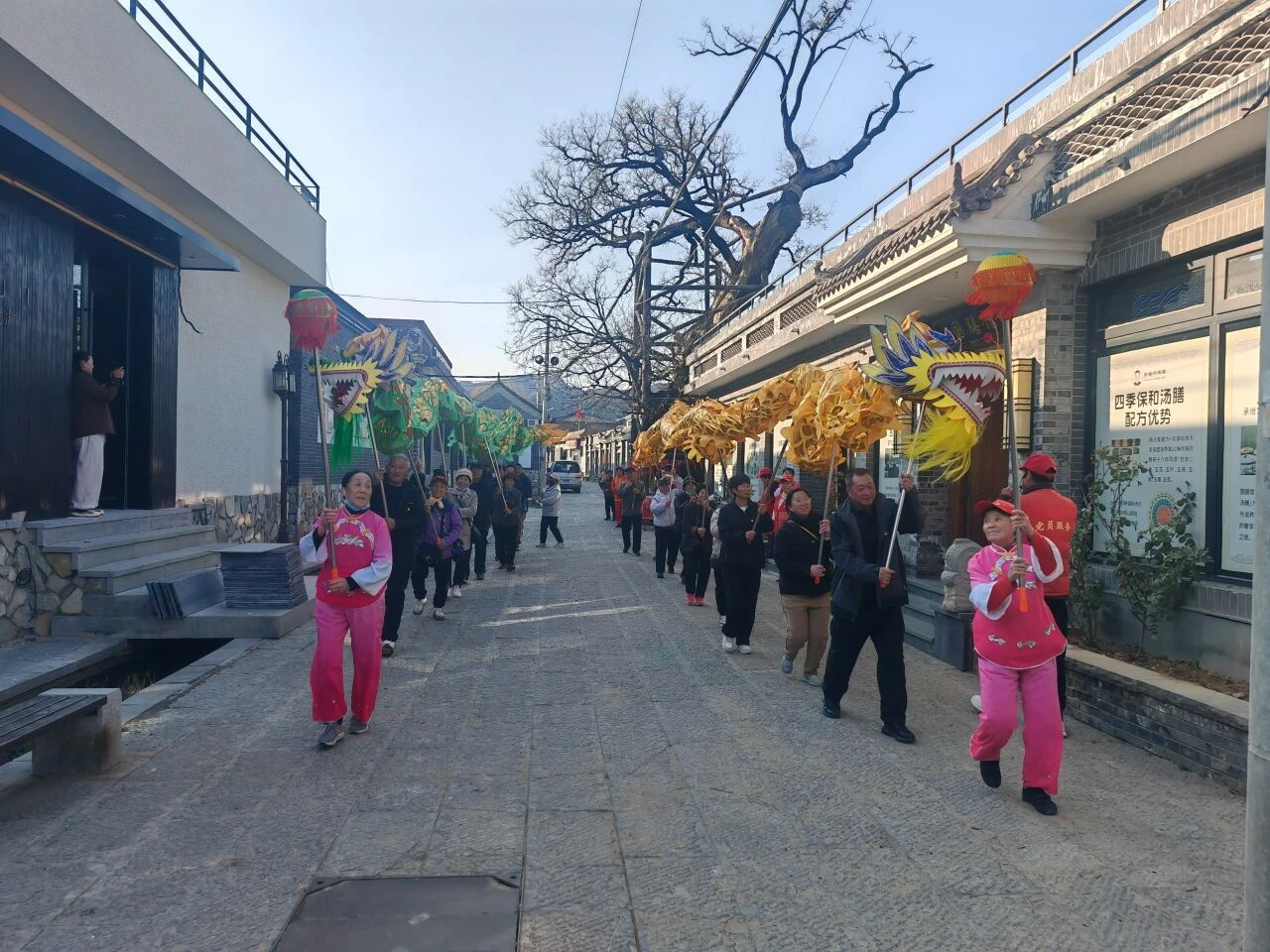 文化与民生建设方面,口头村的实践让党员们产生强烈共鸣。街巷内,非遗秧歌、舞龙表演热闹非凡,胡家店村党员们见状主动加入,与当地村民共舞,在互动中感受两村相似的文化基因与村民对幸福生活的热忱。老年驿站内,四菜一汤的营养膳食、老人们唠家常跳广场舞的温馨场景,为胡家店村规划养老服务中心提供了鲜活样本。党员们边走边议,对照本村实际,就环境整治、文化传承、养老服务等议题展开热烈讨论,纷纷表示要借鉴口头村“党建引领、文化赋能、共建共享”的发展经验。