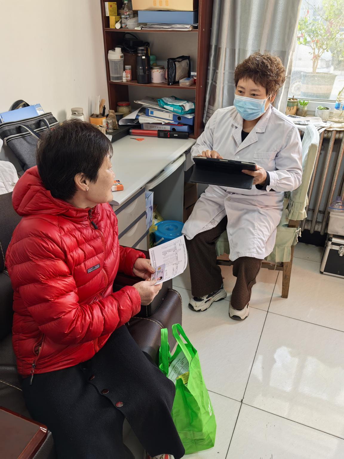 付振芹参加慢病体检后,陈淑利医生在解释化验单
