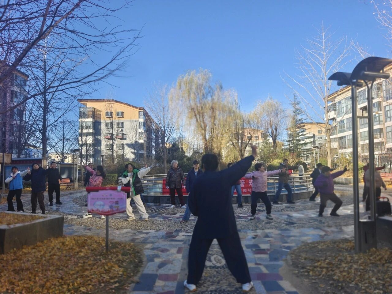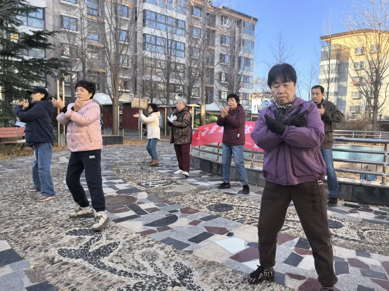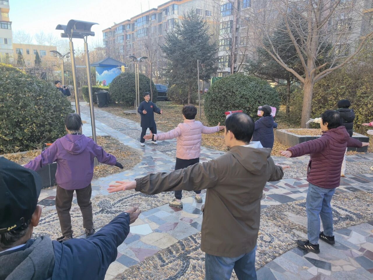 活动中,指导老师首先带领大家回顾了第一式,随后将教学重点聚焦于“左右开弓似射雕”的精细讲解。从稳健的马步下沉,到精准的“八字掌”与“勾手”手型,再到与动作深度配合的绵长呼吸,老师逐一拆解、反复示范。居民们凝神静气,跟随节奏舒臂展体,在一张一弛的“开弓”动作中,亲身感受着传统功法对舒展胸肋、强健肩臂与调节呼吸的独特锻炼效果。现场学习氛围热烈,邻里间相互指点、切磋动作,构成了冬日社区里一幅和谐温暖的画卷。