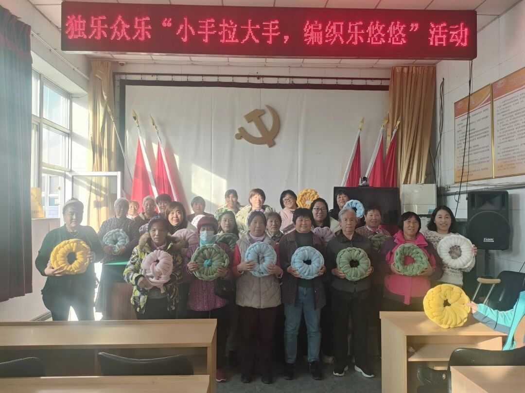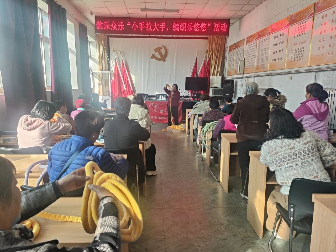 为丰富辖区村民精神文化生活。近日,南独乐河镇张辛庄村新时代文明实践站组织开展编织靠枕主题活动,20余名村民参加活动。
