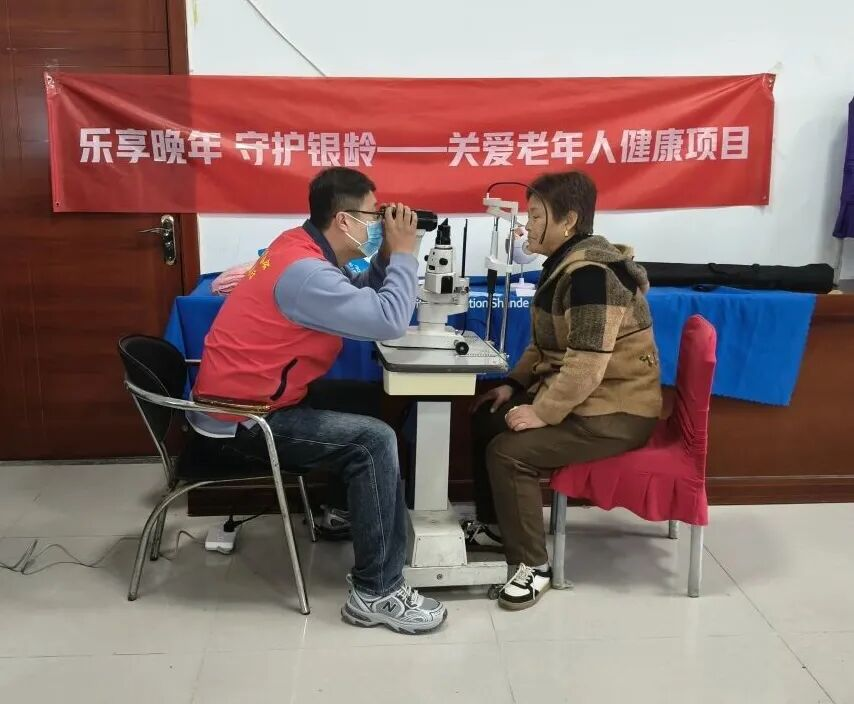 活动派出了专业的医疗团队,为村民们提供了包括视力检测、眼压测量、眼底镜检查、白内障初筛在内的多项免费眼科检查。此外,现场还设立了专业咨询台,并为参与活动的村民准备了贴心伴手礼,将实实在在的健康关怀与温暖祝福送到村民心坎上。