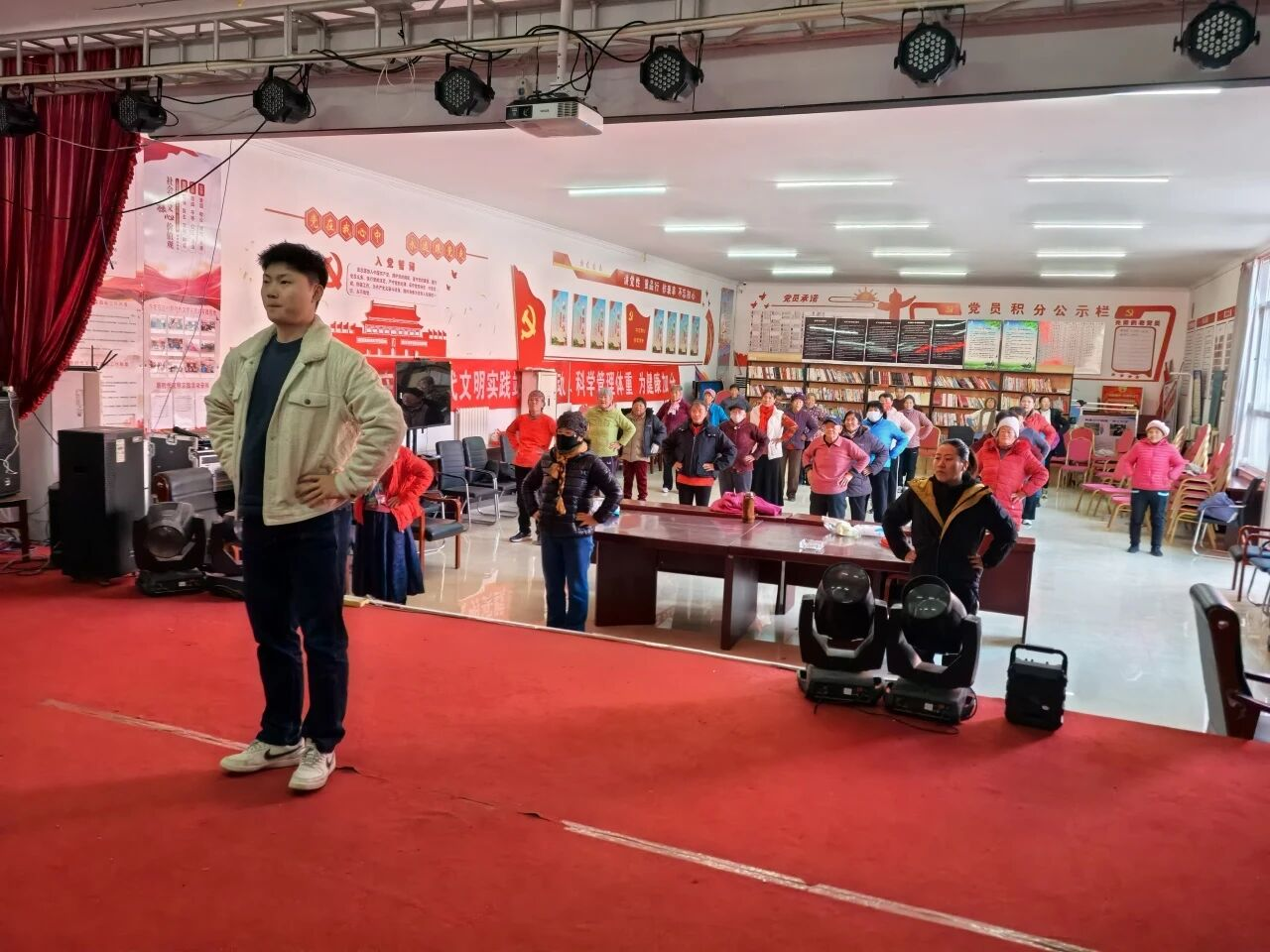 随着学员们逐渐熟悉动作,培训进入跟练阶段。轻快的音乐响起,老师带领大家踩着节拍整齐起舞,摆手、扭腰、跺脚一气呵成。几节课下来,村民们从生疏拘谨到娴熟自如,基本掌握了《幸福山歌》的完整舞蹈技巧,脸上满是收获的喜悦。