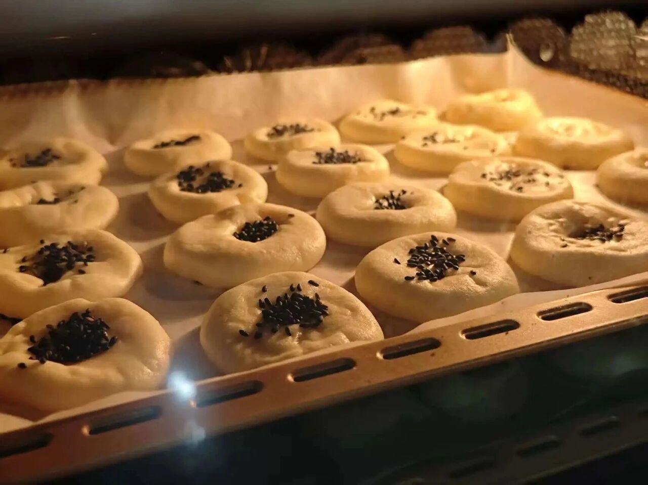 揉好的面团被捏成一个个小团子,撒上芝麻,送进烤箱。当第一盘桃酥出炉,金黄的色泽、酥松的口感,瞬间赢得满场称赞。刚出炉的桃酥还带着余温,大家先尝一块,酥到掉渣的口感让不少人竖起大拇指。做好的桃酥冷却后,村民们小心翼翼地装进袋子里。“自己做的就是不一样,拿回去分享特别有面子。”李大姐举着打包好的桃酥说道。