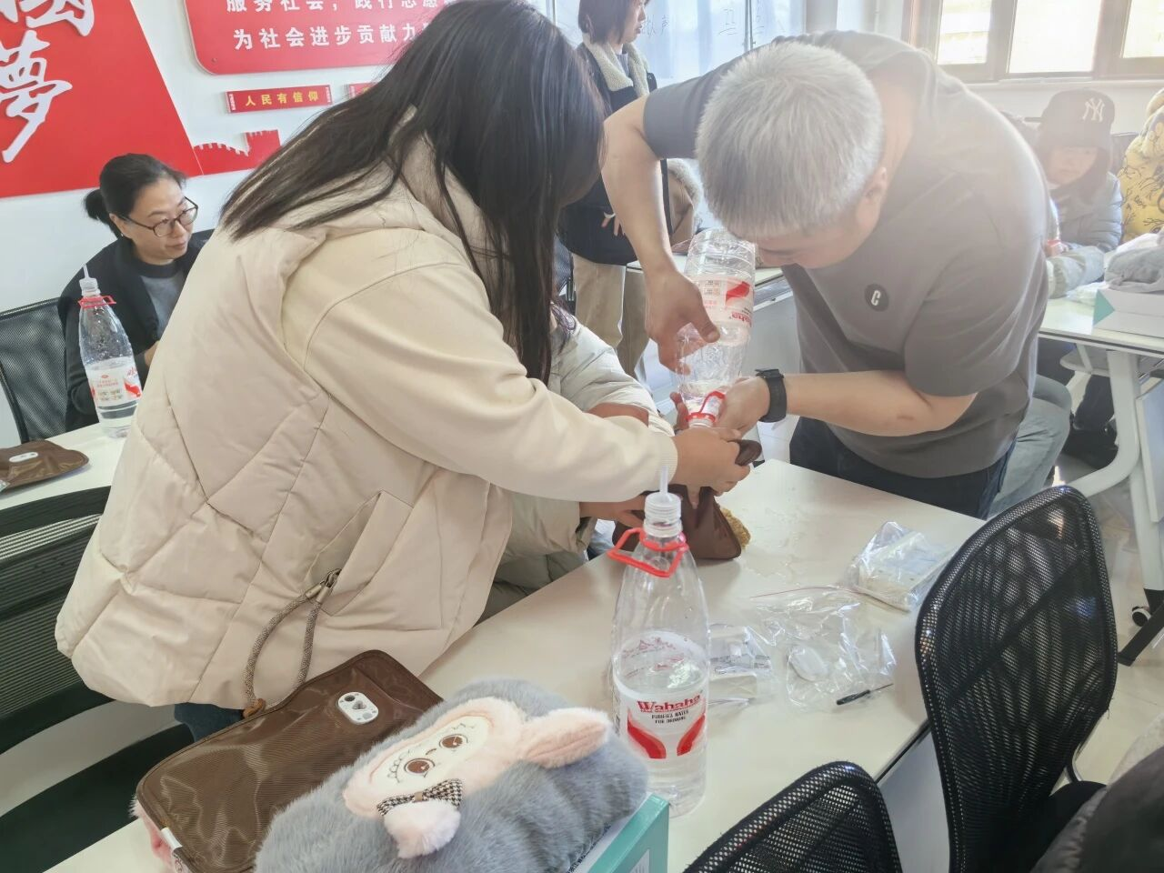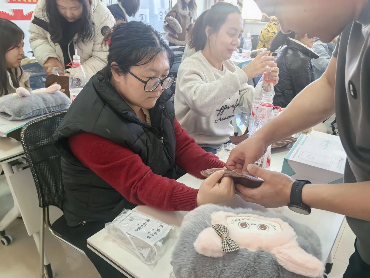 在实操环节,老师逐步演示了填充、封口等关键步骤,并重点讲解使用时的安全注意事项。居民们在老师的带动下认真投入、互相交流,活动现场气氛温馨融洽。
