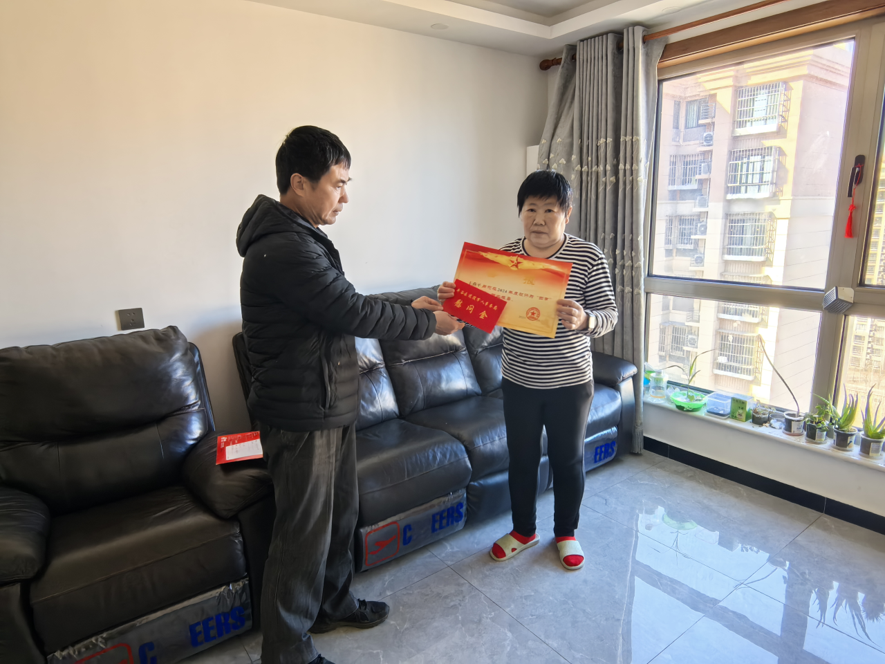 随后,慰问组又赶往王官屯村,看望了荣获“四有”优秀文职人员称号的文职人员家庭。“四有”优秀文职人员的评选,是对文职人员政治素质、业务能力、工作作风和廉洁自律的全面肯定。工作人员对其取得的荣誉表示热烈祝贺,希望家人能继续鼓励孩子在强军兴军的征程上再接再厉,争取更大荣光。